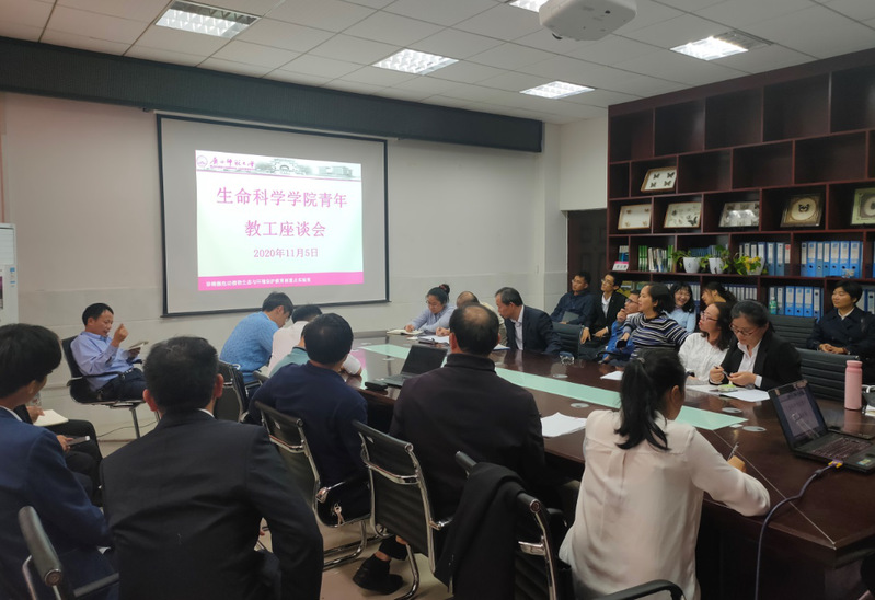 2020年11月5日下午,生命科学学院青年教工座谈会在伯康楼108会议室举行,全院45岁以下的青年教师、各教研室主任和近五年入职的专任教师出席本次会议。
