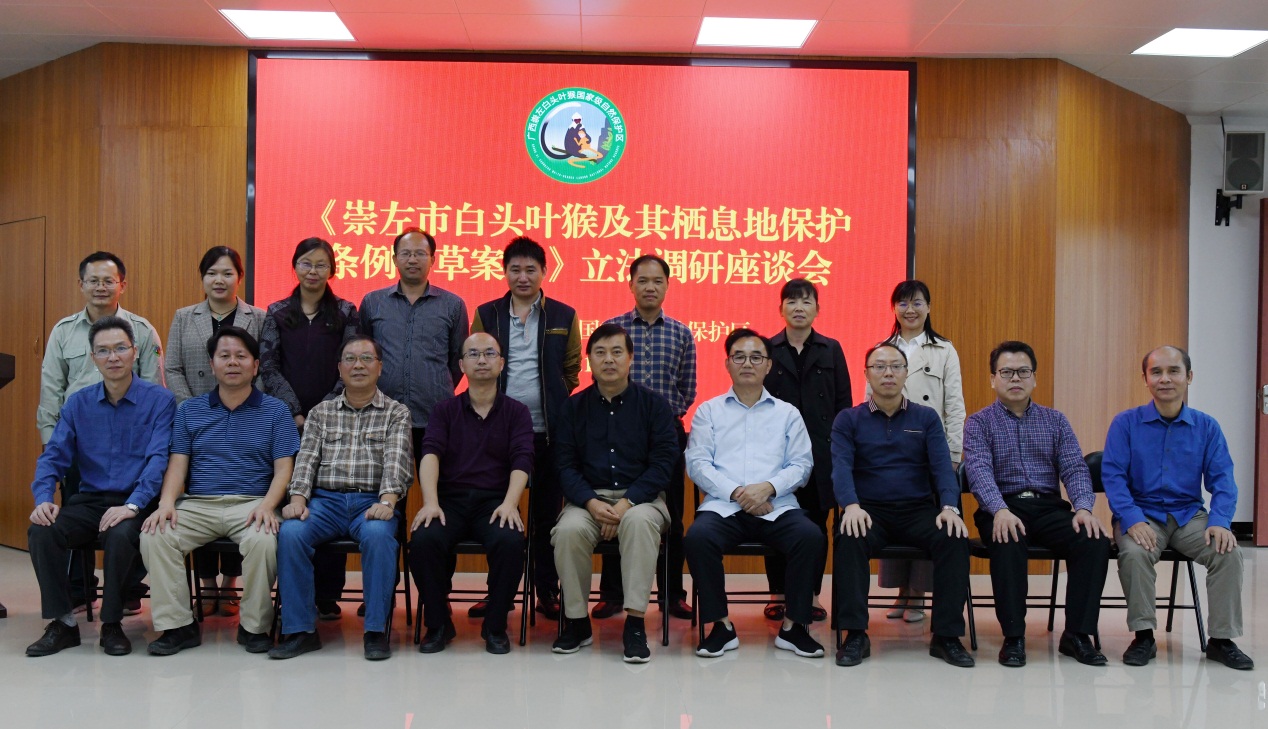 此次座谈会主要商讨《崇左市白头叶猴及其栖息地保护条例(草案)》立法起草工作进展情况,听取相关领域研究工作的专家学者对白头叶猴及其栖息地保护地方立法工作的意见建议,各部门领导与专家者针对《崇左市白头叶猴及其栖息地保护条例(草案)》在起草中碰到的立法重点和难点进行了深入的交流探讨。