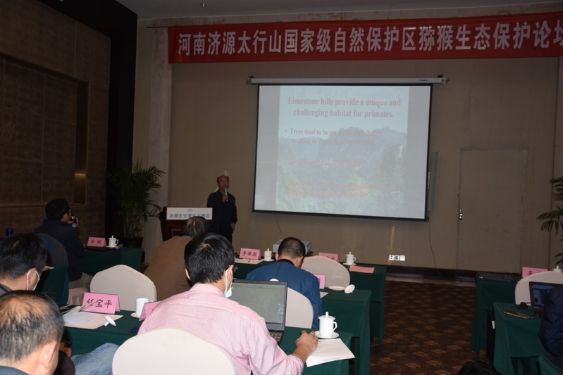 在河南南太行山水林田湖草生态保护修复试点工程的支持下,为促进太行山猕猴、金钱豹及其生态系统的全面保护和恢复,提高中国灵长类及太行山生态系统保护的研究水平和影响力,2020年11月16-17日,中国动物学会灵长类学分会在河南济源太行山国家级自然保护区举办首届太行山猕猴生态保护论坛。珍稀濒危动植物生态与环境保护教育部重点实验室和广西珍稀濒危动物生态重点实验室共同承办此次会议。来自中国科学院动物研究所、中国科学院生态环境研究中心、西北大学、河南科技大学、西华师范大学等国内科研院所和高校的40多位专家学者参加此次会议。会议围绕“争当猕猴生态保护新愚公,创造太行绿色发展新时代”这一主题,分别在灵长类生态与保护、生物多样性监测与自然保护地建设等领域做专题报告。教育部重点实验室常务副主任周岐海教授作为水山林田湖草生态保护项目负责人之一参加此次会议,并做了关于石山猕猴生态的专题报告。