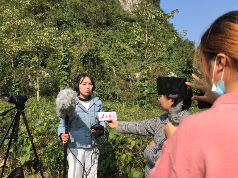 为了解白头叶猴栖息地修复工程、生态廊道、食源植物园建设等工作,2020年11月30日,工人日报广西记者站站长一行人来到广西崇左白头叶猴国家级自然保护区板利片区进行采访。在唐华兴科长向记者介绍了白头叶猴的生活习性等特征后,记者对正在观察白头叶猴的广西师范大学生命科学学院的研究生的日常研究工作进行了解。据该学生介绍:于今年7月下旬她来到保护区跟踪观察白头叶猴,主要对白头叶猴的叫声和行为进行观察和记录,希望对此野生动物有更多的声音方面的了解和认识。采访后记者也鼓励她继续坚持并愿其取得好的研究成果。