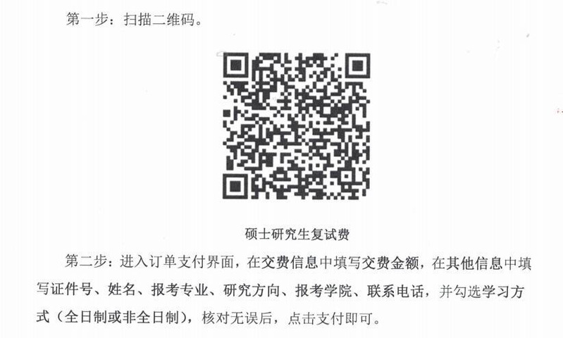 参加复试的考生可提前一天在远程复试系统在线报到平台报到,在线签署考生诚信考试承诺书,提交相关材料,并扫描我校财务处二维码交纳复试考试费。缴费流程参照下图: