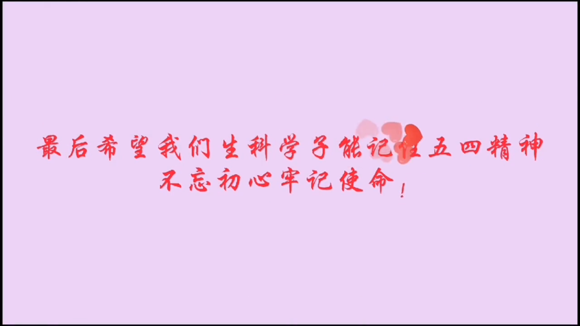 五四青年节来临之际,让我们一起看看生科学子对五四的认识。希望生科学子记住五四精神,不忘初心、牢记使命。