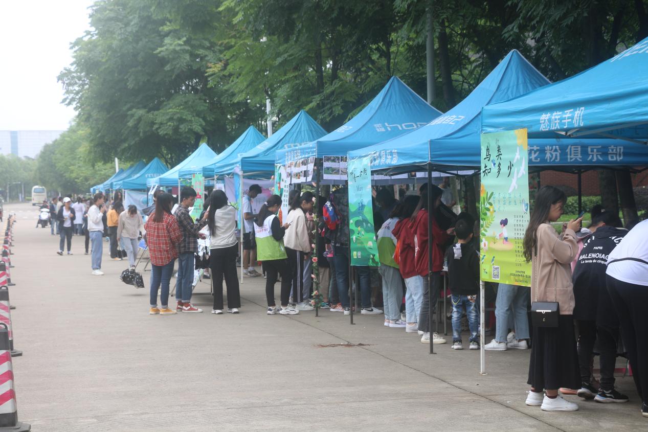 科普一条街的科普活动共有“生科伴我行,生物入我心”(植物印花活动)、“一脉相承,感悟自然”、“滴胶中的小世界”、“花语知多少”、“红星青春”、“动物大世界、故事我来说”、“动物分类对对碰”、“鸟类知多少”、“晓梦迷蝴蝶、科普我践行”、“关爱濒危动物,共建和谐社会”、“庆建党百年,赏微生物之美”、“见‘微’知著,赏微生物之美”、“细菌菌落连连看”13个项目,分别以科普小游戏、科普手工、答题竞赛、标本讲解等多种多样的方式对动物、植物与微生物的知识进行科普,让科普在传递专业知识和生态保护理念时同样充满乐趣。在活动中,现场气氛如火如荼,各个摊位前挤满了前来参与活动的人群,除了充满求知欲的在校大学生,热闹的科普一条街还吸引了许多家长与孩子,将科学之光照向孩子们。