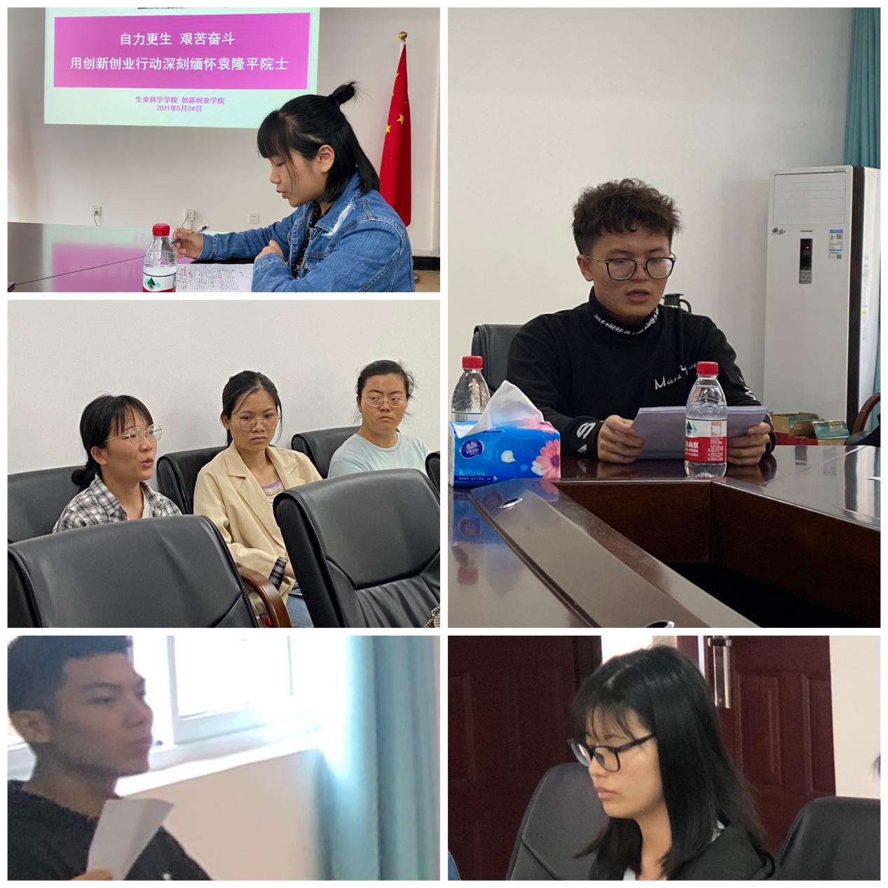 会上,师生党员集体观看了“杂交水稻之父”袁隆平生平事迹视频,并举行了集体悼念仪式。在主旨发言环节,创新创业学院副院长罗元从习近平总书记有关自力更生、艰苦奋斗是我们党的传家宝,是党员干部立身立业的根基,是中国共产党的创业精神的讲话谈起,延伸到袁老一生为国为民为天下的家国天下情怀。认为袁老不仅是一位伟大的勇于创新的科学家,也是一位敢闯敢干的伟大创业者,在他身上闪耀着我们中国共产党人自力更生、艰苦奋斗的伟大创业精神。希望大家能从我做起、从专业做起、从为民办实事做起,用创新创业行动把袁老自力更生、艰苦奋斗的共产党人应有的创业精神发扬光大。青年党员教师、北京大学博士后杨盼宇讲述了90岁的袁老以视频方式给西南大学学子回信,勉励青年。她表示,“知识、汗水、灵感、机遇”这八个字关系密切,互为支撑,不能分割,是对我们的勉励,也是对我们的指引。我们每个人都应该认真领悟其中的道理,并积极化其为践行初心使命的精神指引。生物科学系本科生党支部书记黄倩从“袁老身上的四点精神对当代青年成长的意义”进行了交流,她勉励青年学子要将社会责任作为本分为此奋斗,注重培养良好的综合素养,要有不怕吃苦的精神意识,要有为国家、民族和人民奉献一生的大格局大境界。保送中国科学院微生物研究所2021届毕业生党员金秋珠表示,青年学生应该树立敢于创造的雄心壮志,要敢于提出新的理论,开辟新的领域,探索新的路径,为不断丰富和发展科技产业等方面做出贡献。考取中国农业大学2021届毕业生江圣哲从新时代的青年担当出发,表示将坚定不移的继承袁老的奋斗精神和梦想,为祖国富强奉献出自己的力量。