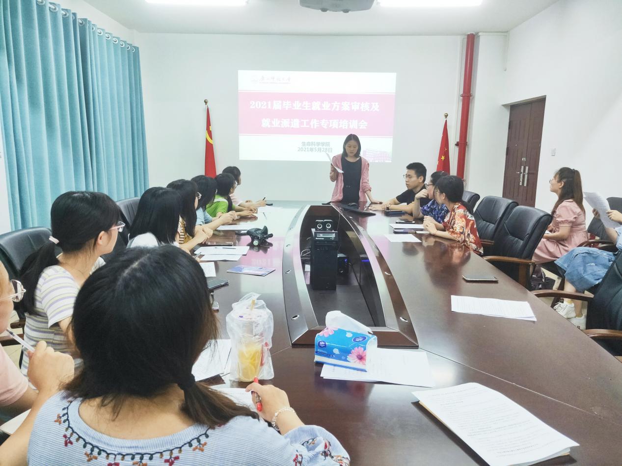 为了顺利开展2021届毕业生就业方案审核与就业派遣工作,生命科学学院于2021年5月28日21:30在理科楼行政北楼党员之家2-2-205成功召开生命科学学院2021届毕业生就业方案填写核对工作会议。本次宣讲会由2017级本科辅导员黄倩老师主持,2017级本科兼职辅导员王绮老师,研究生辅导员助理张东庆师兄和2021届本科生及研究生的部分班干参加此次会议。