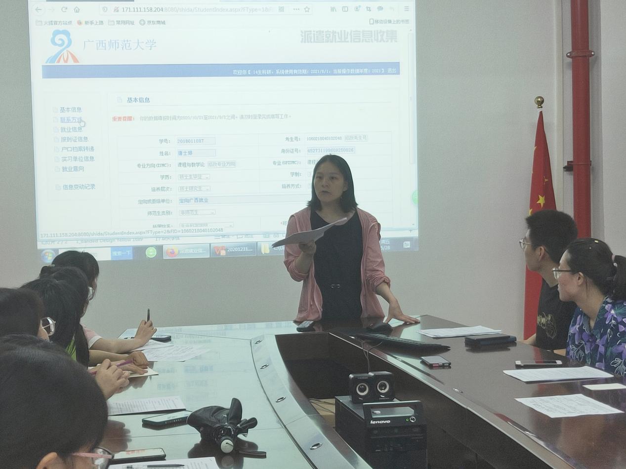 会议伊始,黄倩老师分别从就业方案材料报送时间安排、毕业生填写核对就业方案相关信息的依据和方法、就业派遣方案内容的导出核对与填写要求这三方面讲解了就业方案填写的注意事项,并重点强调若档案需派遣回生源地时,务必参照生源地数据库填写最准确的地址。其次,张东庆师兄补充时强调若就业单位或学生本人委托就业单位所在地人才交流机构托管档案时根据三方协议判断是否需要提交三方托管证明。最后黄倩老师针对此项工作进行了布置。