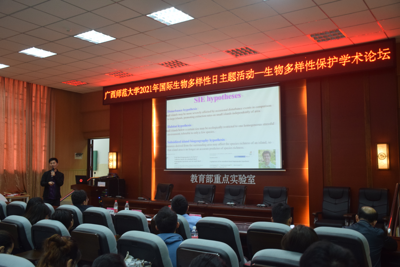 2021年5月22日是第27个国际生物多样性日,秉承着“呵护自然人人有责”国际生物多样性日的主题,同时也借此契机,为全校师生营造跨学科交流氛围的平台,丰富学术交流内涵、拓宽学术视野,使师生更加深入了解生物多样性相关知识,并树立“保护生物多样性,从自己做起,从现在做起”的生态意识,校科学技术协会联合生命科学学院于2021年6月18日上午9:30在广西师范大学伯康楼112学术报告厅成功开展“建党百年献礼,科普由我践行”国际生物多样性日科普行活动之生物多样性保护学术论坛。