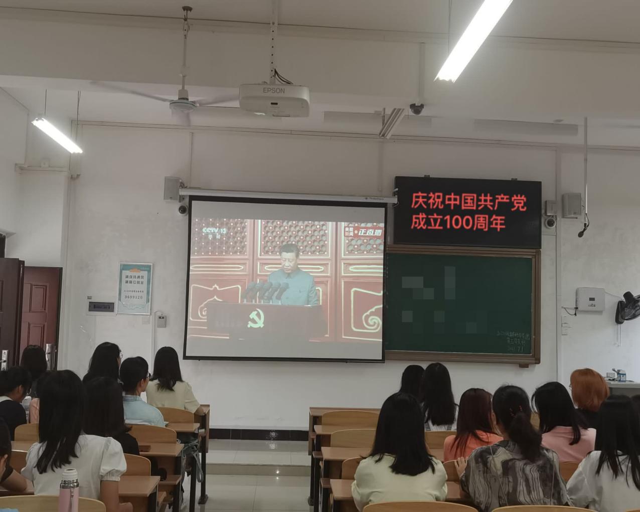 2021年7月1日上午8时,广西师范大学生命科学学院师生在伯康楼报告厅、党员之家、教室、宿舍等地观看庆祝中国共产党成立100周年大会直播视频,深入学习习近平总书记在庆祝中国共产党成立100周年大会上的重要讲话。