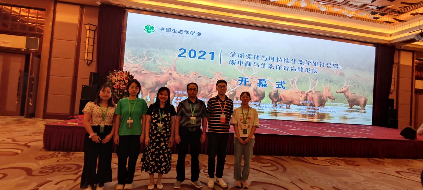 大会主要围绕“全球变化背景下社会-经济-自然耦合关系”“全球气候变化的区域生态适应”“全球气候变化对海岸带地区可持续发展的影响”“可持续生态学的评估与可持续发展目标实施”“碳中和与生态保育高峰论坛”等主题开展。来自全国高等院校、科研院所、专业机构等百余位专家学者们齐聚一堂,分享自己的思考与研究,擘画生态发展与碳中和的未来。学术会议期间,马姜明教授参加了中国生态学学会可持续生态专业委员会会议暨大百科全书可持续生态领域词条编撰工作研讨会,同时马姜明教授还主持了“可持续生态学的评估与可持续发展目标实施”分会场学术报告。我院2019级生态学专业研究生辛文杰、李倩分别作了以“基于遥感生态指数(RSEI)的桂林市生态环境质量评价”、“基于三维生态足迹模型的桂林生态足迹动态分析与驱动力分析”为题的学术报告。