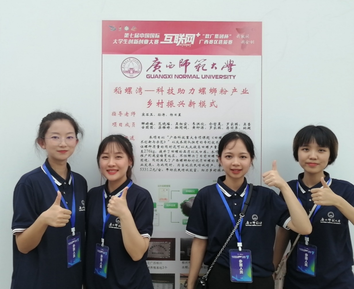 7月20日,第七届“互联网+”大赛广西赛区选拔赛圆满举行,我院项目《稻螺湾—科技助力螺蛳粉产业乡村振兴新模式》在排位赛中获得了青年红色筑梦之旅赛道创意组第一名,荣获广西区级金奖,成为金种子项目,为我院创新创业工作再添佳绩。