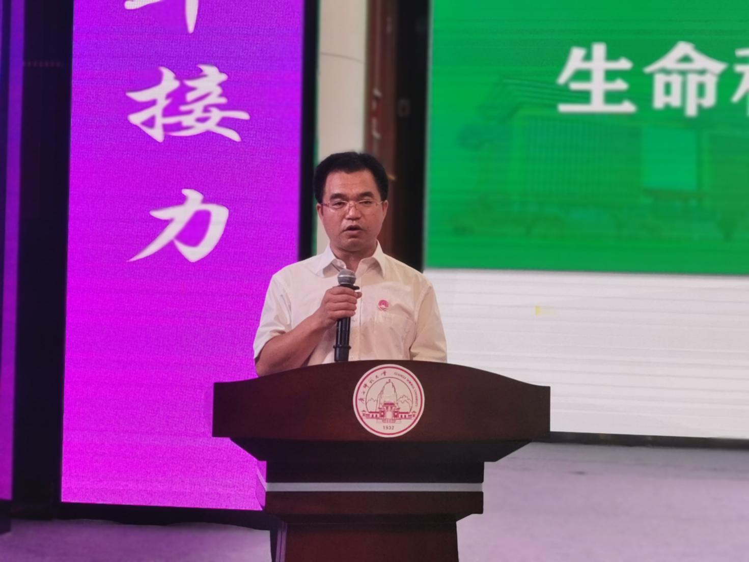 学院青年教师代表杨盼宇结合个人研学经历,为新生送上干货满满的寄语,并向新同学的新征程提出宝贵建议,她表示,找准方向、直面挫折、认真踏实,是踏上辉煌人生之路的必备技能。学院研究生新生代表吴海锋同学代表全体新生向全体师长的辛勤付出表示感谢,对新起点和新生活表示向往,并号召全体新生传承生科精神,奋勇拼搏,在生科舞台上践行三牛精神,用坚实的脚步,为青春画下生动的注脚。最后,在本科新生代表张君烔同学的带领下,全体新生庄严宣誓,同学们的铮铮誓言响彻会场。