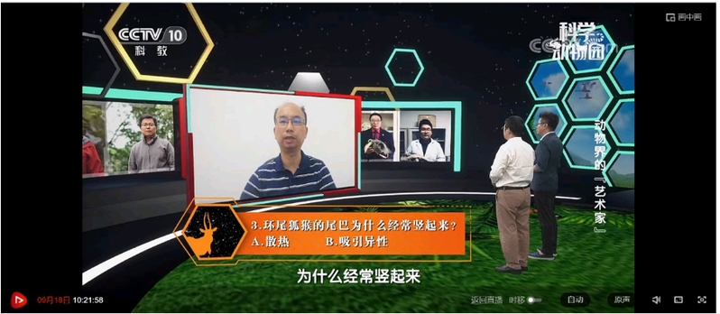 2021年9月18日,中央电视台科教频道《科学动物园》栏目播出科普节目《动物界的艺术家》,我校生命科学学院周岐海教授作为特邀嘉宾参与节目的录制。