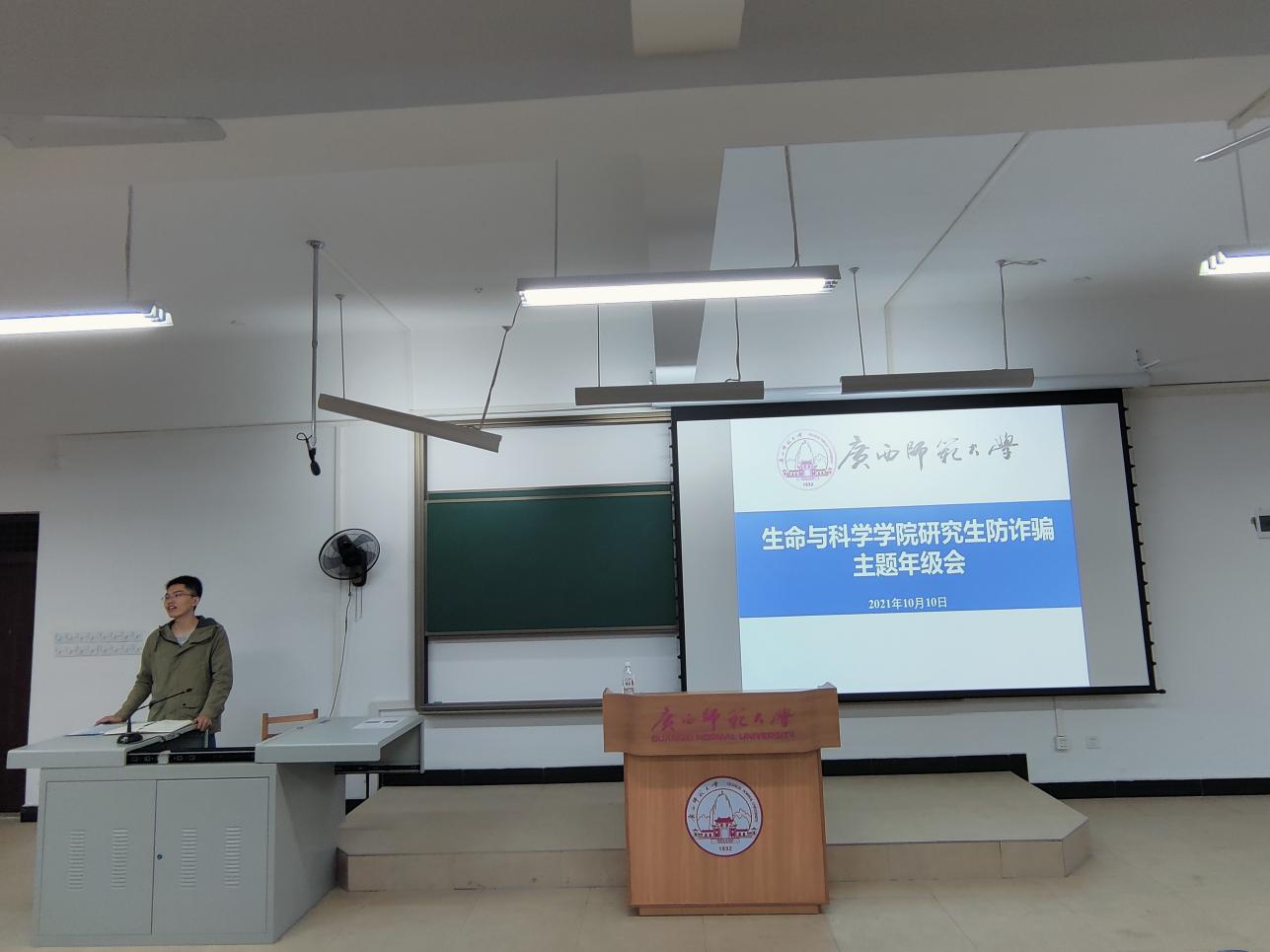 10月10日晚,生命科学学院研究生防诈骗主题年级会在理科楼四区201教室召开,由生命科学学院研究生辅导员徐夏帆老师主持。会议以防诈骗教育为主题,分别从“安全常识”、“危险识别”、“预防技巧”、“应对策略”共四个方面展开。