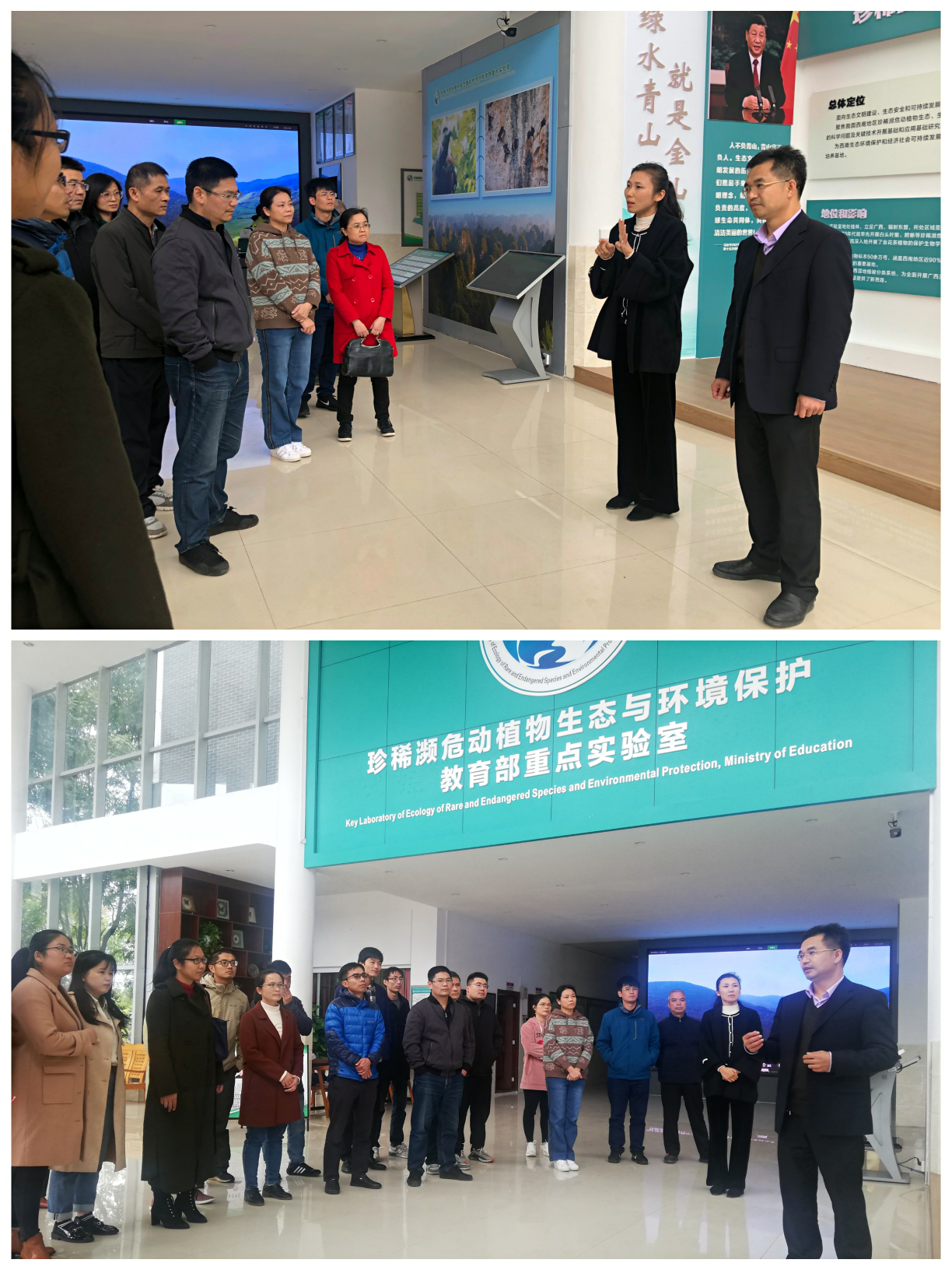 教师参观珍稀濒危动植物生态与环境保护教育部重点实验室成果展厅