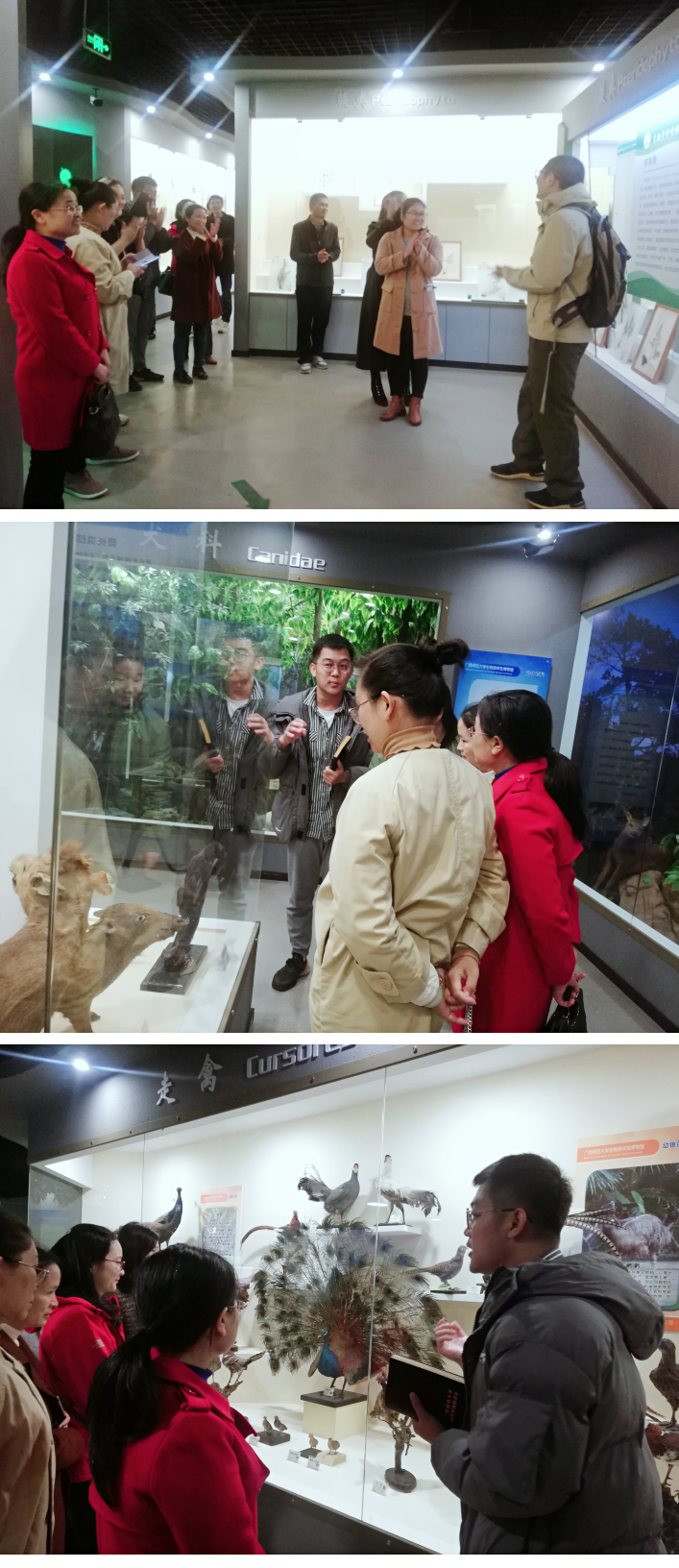 随后,党员教师依次参观珍稀濒危动植物生态与环境保护教育部重点实验室成果展厅、水生植物繁育基地、生物多样性博物馆等地。在参观多样性博物馆时,林建忠和张启伟两位老师分别讲解动植物相关知识,让教师们更深层次理解“绿水青山就是金山银山”的内涵。参观过程中,老师们认真聆听工作人员的讲解,做好相关记录的同时,也向他们提出专业问题,深入了解动植物生态相关内容。
