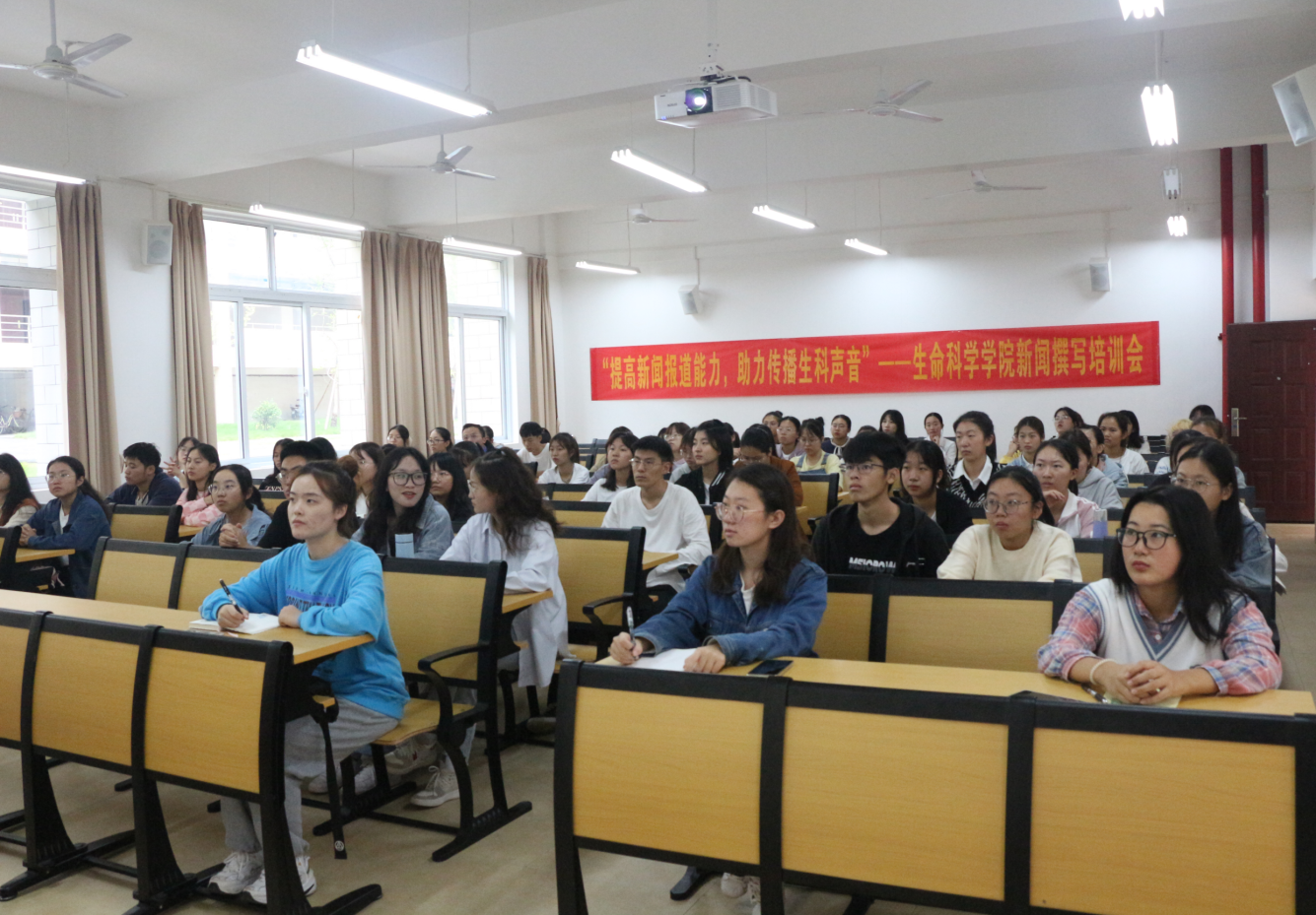 为提高宣传效力,更好地传播生科声音,生命科学学院于2021年11月6日中午在理科楼三区115教室召开“提高新闻报道能力,助力传播生科声音”新闻撰写培训会。会议由生命科学学院团委副书记秦乐主讲,生命科学学院全体学生会成员共同参加。