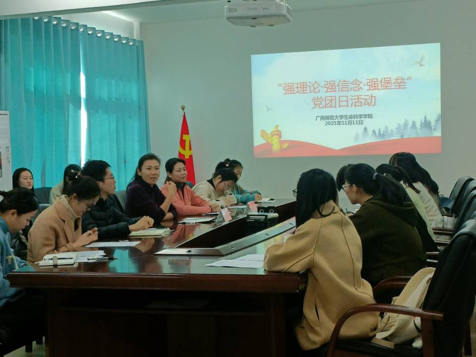 11月11日,生命科学学院在理科组团党员之家顺利开展“强理论·强信念·强堡垒”主题党日活动,生命科学学院党委书记孙涛老师、党委副书记卢洁老师、各学生党支部书记、专兼职辅导员及全体新生党员共同参与,活动由徐夏帆老师主持。