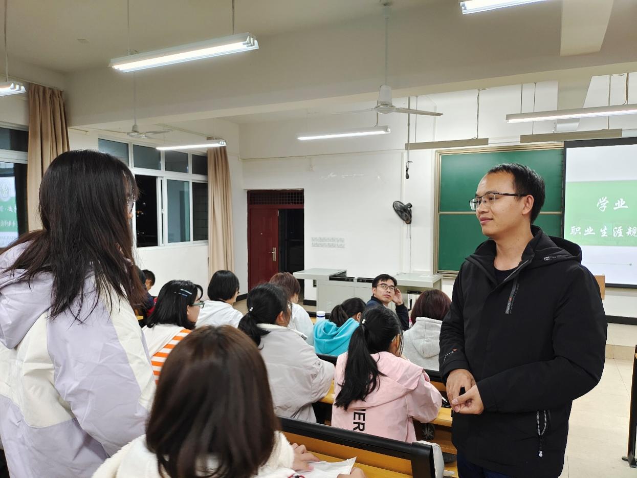 各班班主任在讲座上围绕“学业·专业·职业·事业”主题进行经验分享和指导。老师们在内容上分析了大学生活,在链接上贯穿了整个生涯线,和新生成功地进行了一场意义深远的生涯对话。讲座中,老师们以自身经历畅谈生涯,以学习思维教授方法,为学子拨开了学习难、择业更难的生涯“迷雾”。几位班主任老师从生涯规划和终身学习等视角和同学们探讨大学及未来职业的选择的问题,指引学生们积极找寻自己的生涯方向。在自由提问环节,同学们纷纷提出心中疑惑,老师们则耐心细致地为同学们做出解答。