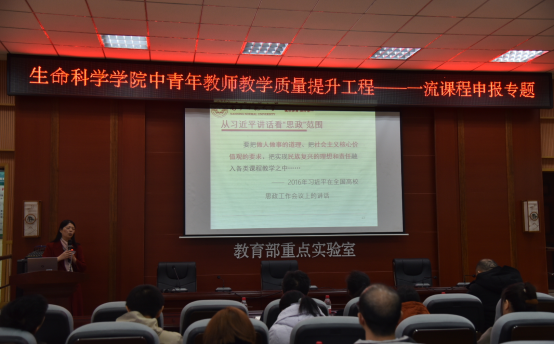 为做好生命科学学院中青年教师教学质量提高工程——一流课程申报的工作,2021年11月24日,我院邀请南宁师范大学环境与生命科学学院何英姿教授开展一流课程申报的专题报告。生命科学学院党政领导以及学院中青年教师代表出席本次报告会。