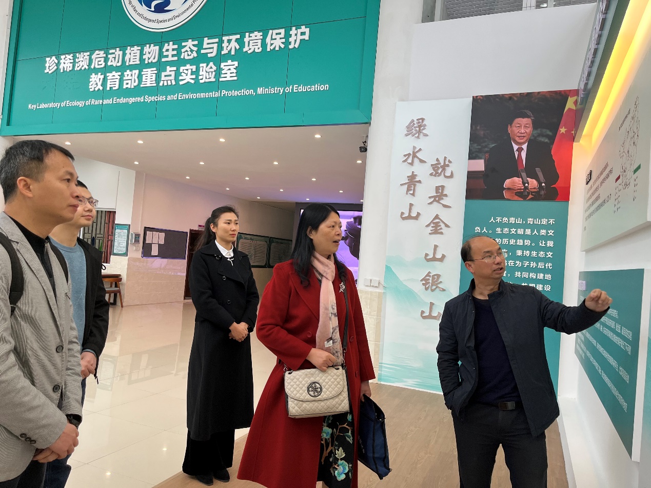 2021年11月24日,南宁师范大学环境与生命科学学院何英姿书记、杨剑副院长一行六人到我室开展交流合作。我室常务副主任周岐海教授首先介绍重点实验室基本情况,随后参观了我室科普教育基地——生物多样性博物馆,并来到重点实验室成果展厅参观我室近年在科研、科普、乡村振兴等领域取得的成果。随后,我院党政领导与何书记一行展开座谈交流会,深入交流师范专业认证和申报国家一流专业建设点的成功经验。