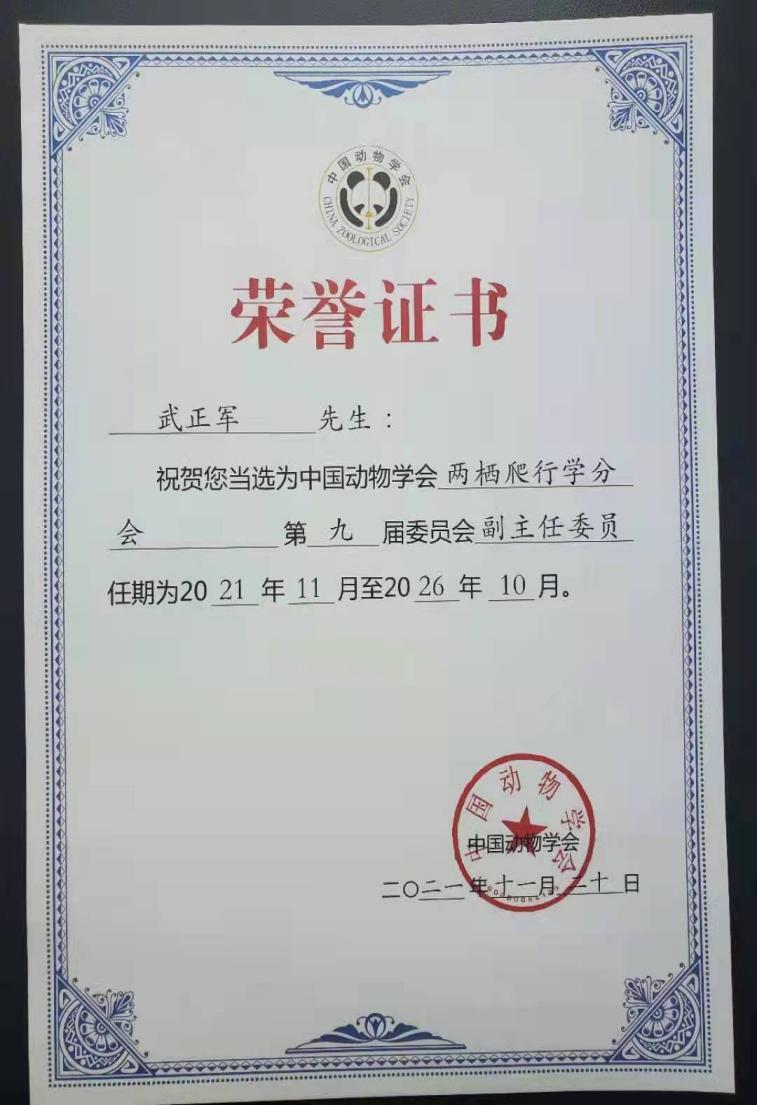 【喜报】我院武正军教授当选中国动物学会两栖爬行动物学分会第九届委员会副主任委员
