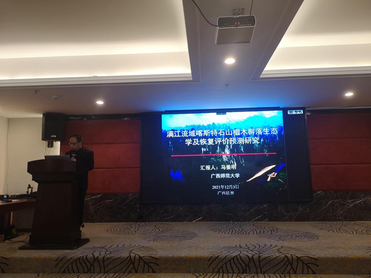 由广西植物学会和广东省植物学会联合主办的第二届广东广西植物学会联合学术年会于12月3日~4日在桂林成功举办。来自广东、广西的科研院所和高校植物学领域80名代表参加会议。广西植物学会副理事长梁士楚教授、广西植物学会副秘书长马姜明教授,以及杨皓博士、覃云斌博士、艾郴兵博士、陈喆博士等参加了本次会议。其中,副院长马姜明教授在大会上以“漓江流域喀斯特石山檵木群落生态学及恢复评价预测研究”为题做学术报告。