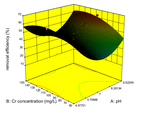 图2 使用响应面设计得到Cr浓度vs pH 的响应