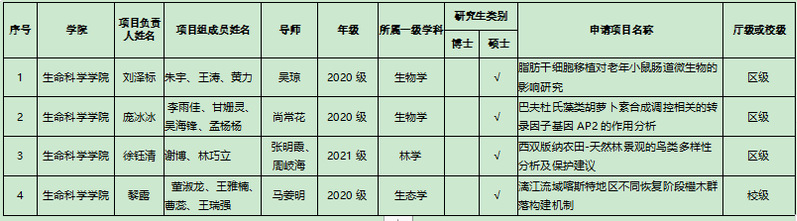 关于生命科学学院2022年度硕士研究生创新项目评审结果的公示