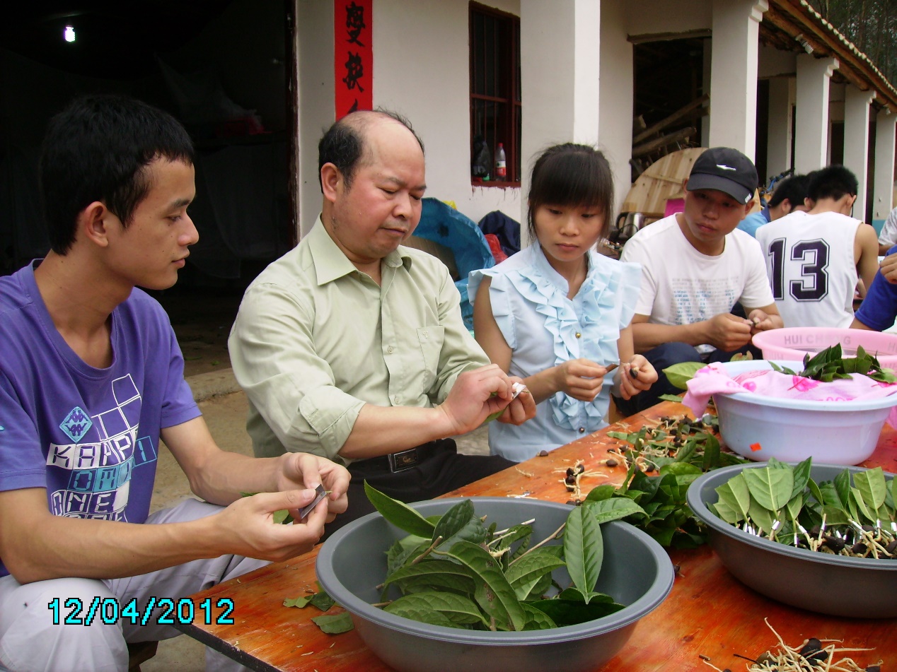 2010年起,他研究“油茶良种和丰产栽培技术研究与示范”项目,在农民家门口搞起“试验林+现场培训”。他带领教师和学生先后到国家贫困县和桂北山区等十多个县、乡(镇)开展技术指导,指导并协助建立柳州三江油茶基地。8年来,油茶产果量提高了3倍,他在银杏、油茶和金花茶这3个经济林树种上“大做文章”,使其成为农民致富的“摇钱树”。