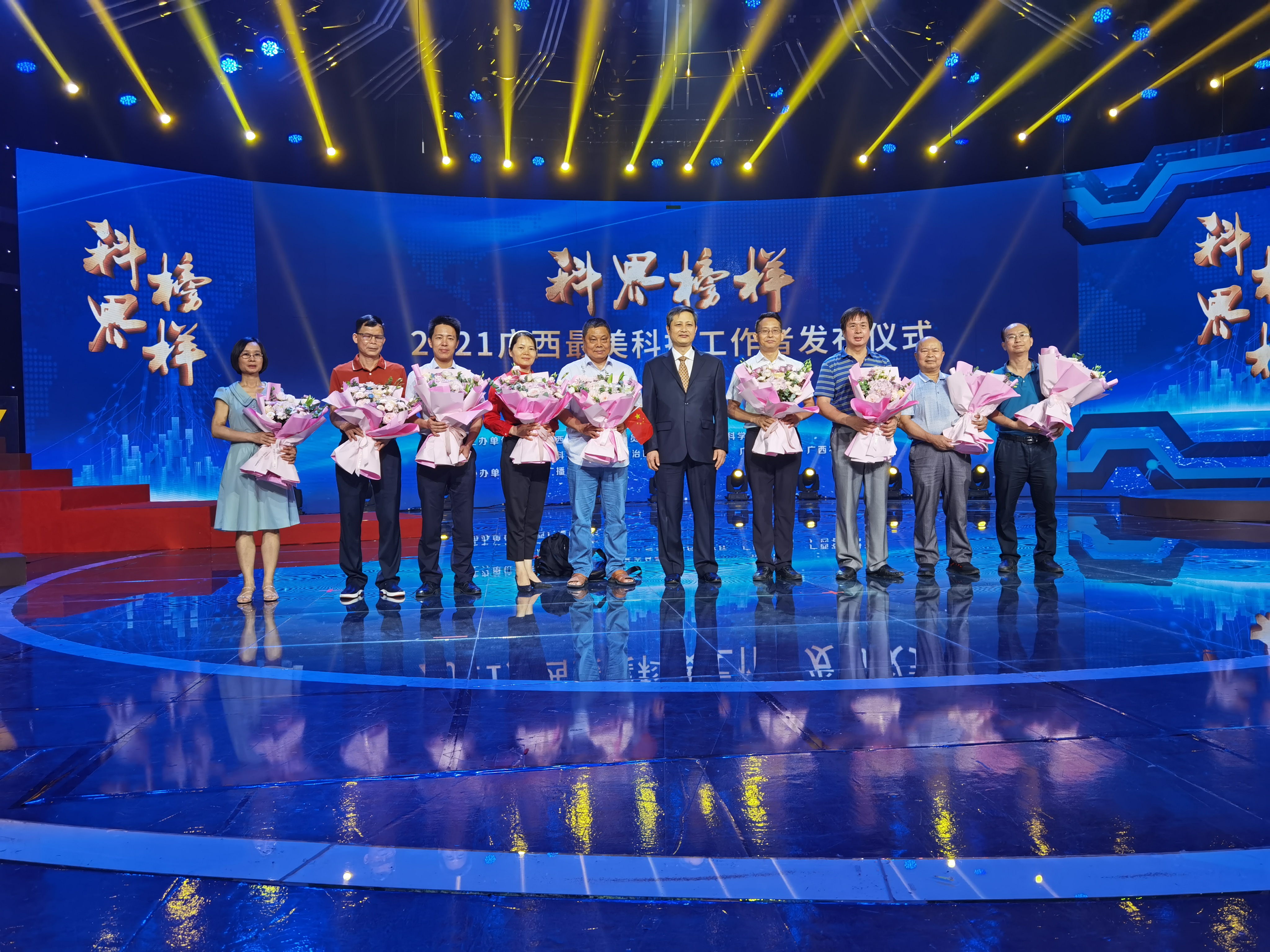 邓荫伟(右二)受邀参加2021年“广西最美科技工作者”发布仪式
