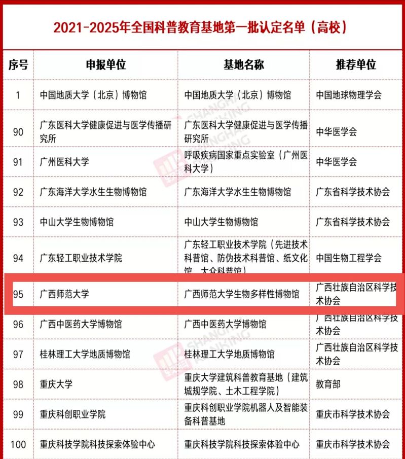 【喜报】广西师范大学生物多样性博物馆入选为2021-2025年全国教育基地第一批认定名单