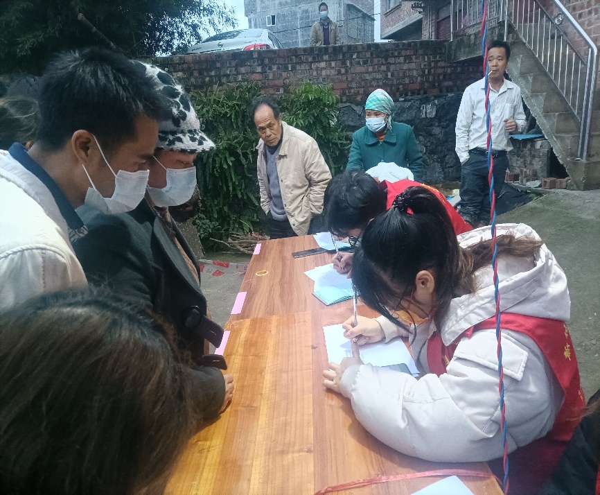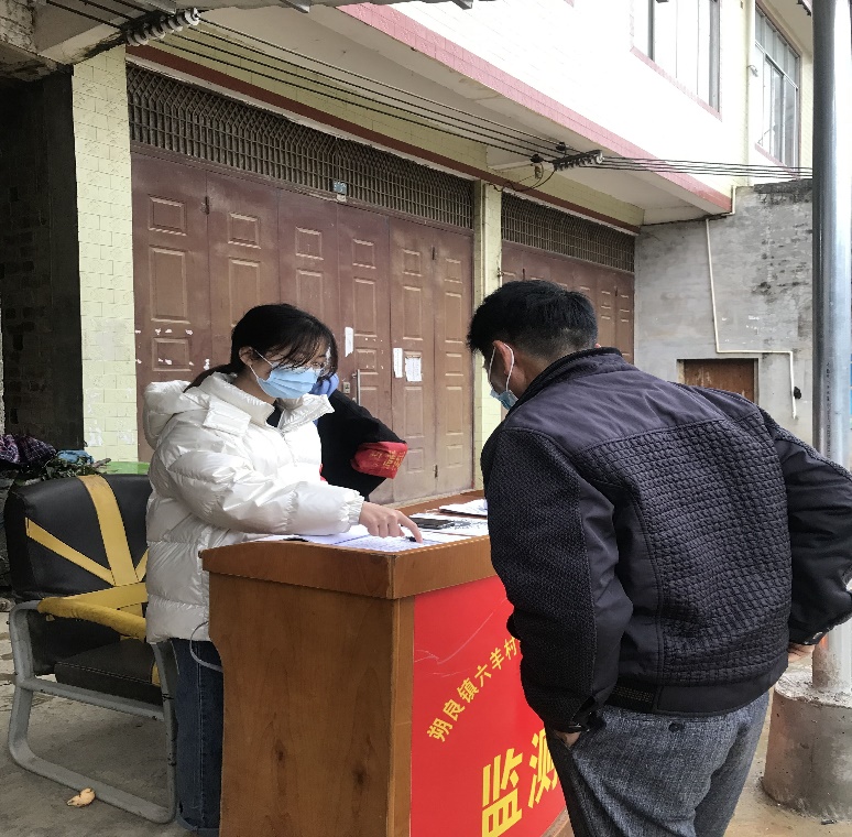 安小菲 林业及学科教学专业研究生党支部党员,在贵州省思南县青杠坡镇岩头河村 参与进行村委会值班、返乡人员信息登记、查码工作。