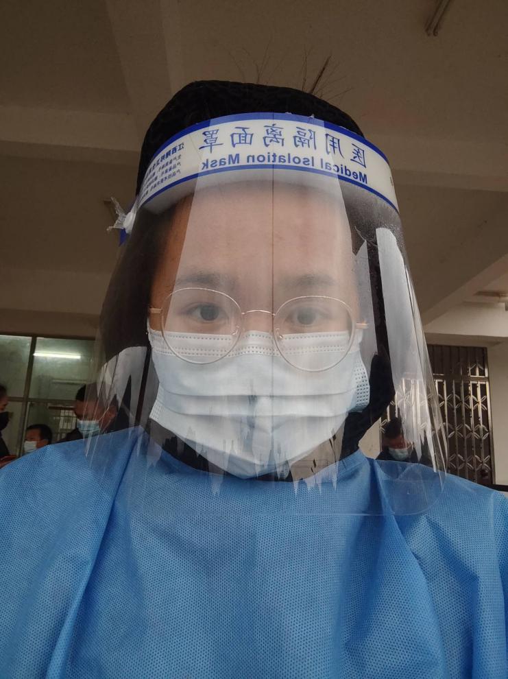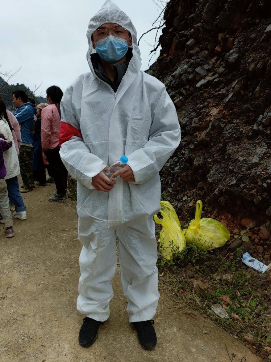 19级生物科学专业三班黄小娟(穿防护服中间)