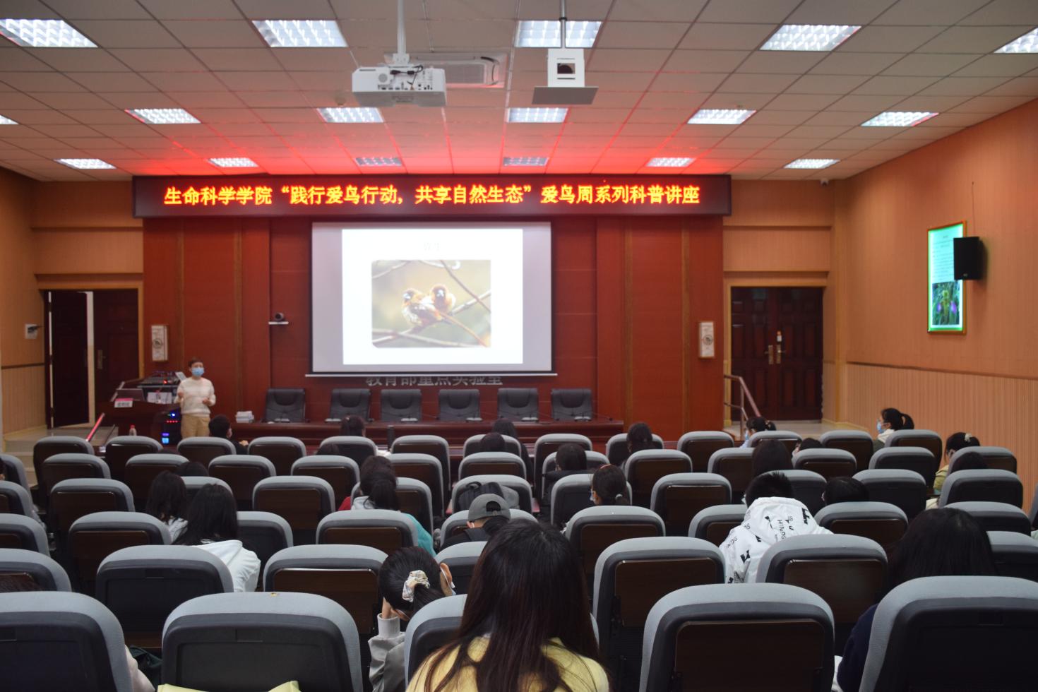 为督促同学们形成科学爱鸟、正确护鸟的爱鸟意识,2022年3月26日,正值中国“爱鸟周”之际,生命科学学院于广西师范大学雁山校区伯康楼112报告厅开展“践行爱鸟行动,共享自然生态”爱鸟周系列科普讲座。本次活动有西南林业大学鸟类专家韩联宪教授和生命科学学院张明霞博士主讲,学院300余名学生代表以线上、线下相结合参加活动。