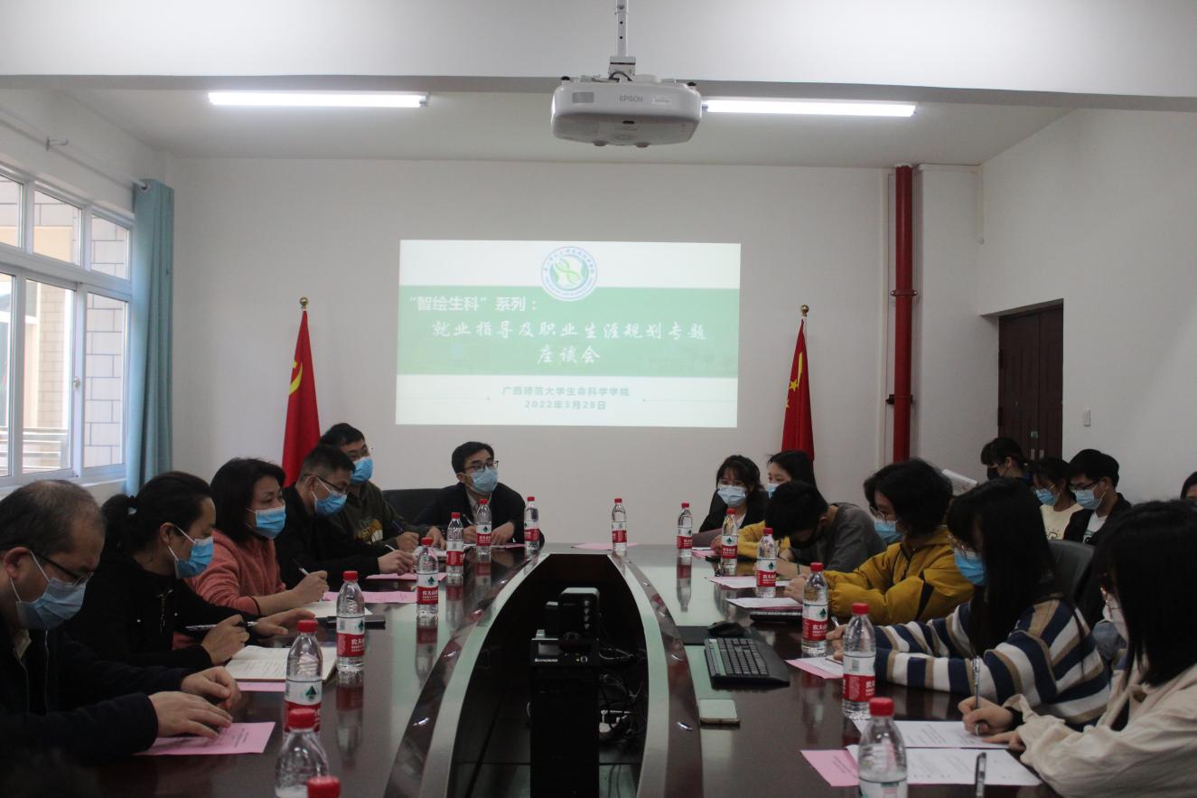 为指导学生建立清晰完善的自我认知与职业规划,让学生进一步了解和掌握就业市场对相关域人才的需求,2022年3月28日,生命科学学院于理科楼组团党员之家举办了“智绘生科”之就业指导及职业生涯规划专题座谈会。本次活动由学院党委副书记卢洁主持,副院长吴琼、各教研室代表、专兼职辅导员出席本次活动,各班级代表共同参加。