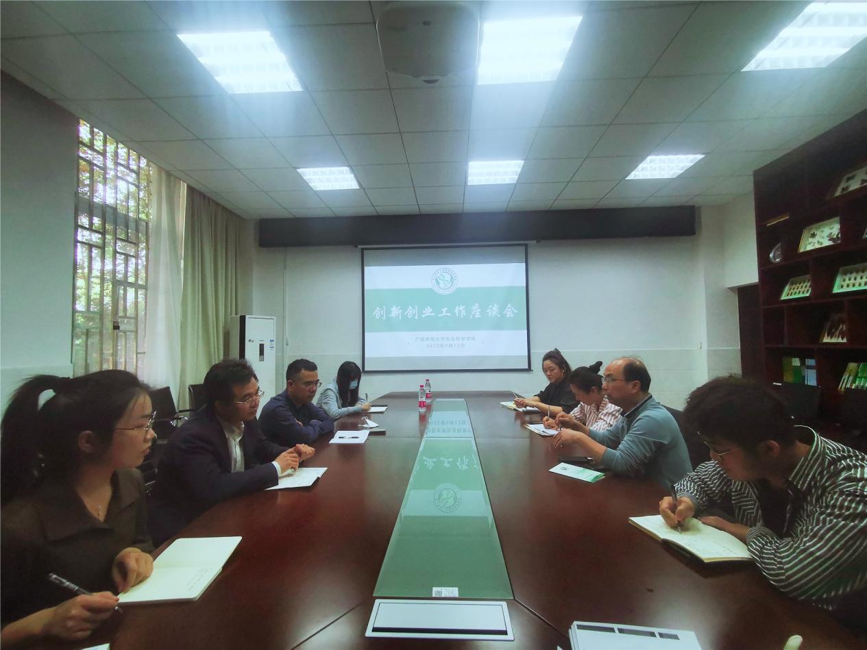 为深入贯彻落实习近平总书记关于教育的重要论述和给第三届中国“互联网+”大学生创新创业大赛“青年红色筑梦之旅”大学生重要回信精神,落实《国务院办公厅关于深化高等学校创新创业教育改革的实施意见》等文件精神,全面提升大学生创新创业能力、加快培养创新创业人才,4月12日上午,生命科学学院在雁山校区伯康楼108会议室召开创新创业工作座谈会。本次会议邀请了创新创业学院副院长罗元到场指导交流,学院党委书记孙涛、院长武正军、珍稀濒危动植物生态与环境保护教育部重点实验室常务副主任周岐海、教师代表、辅导员等十余人参加了此次会议。