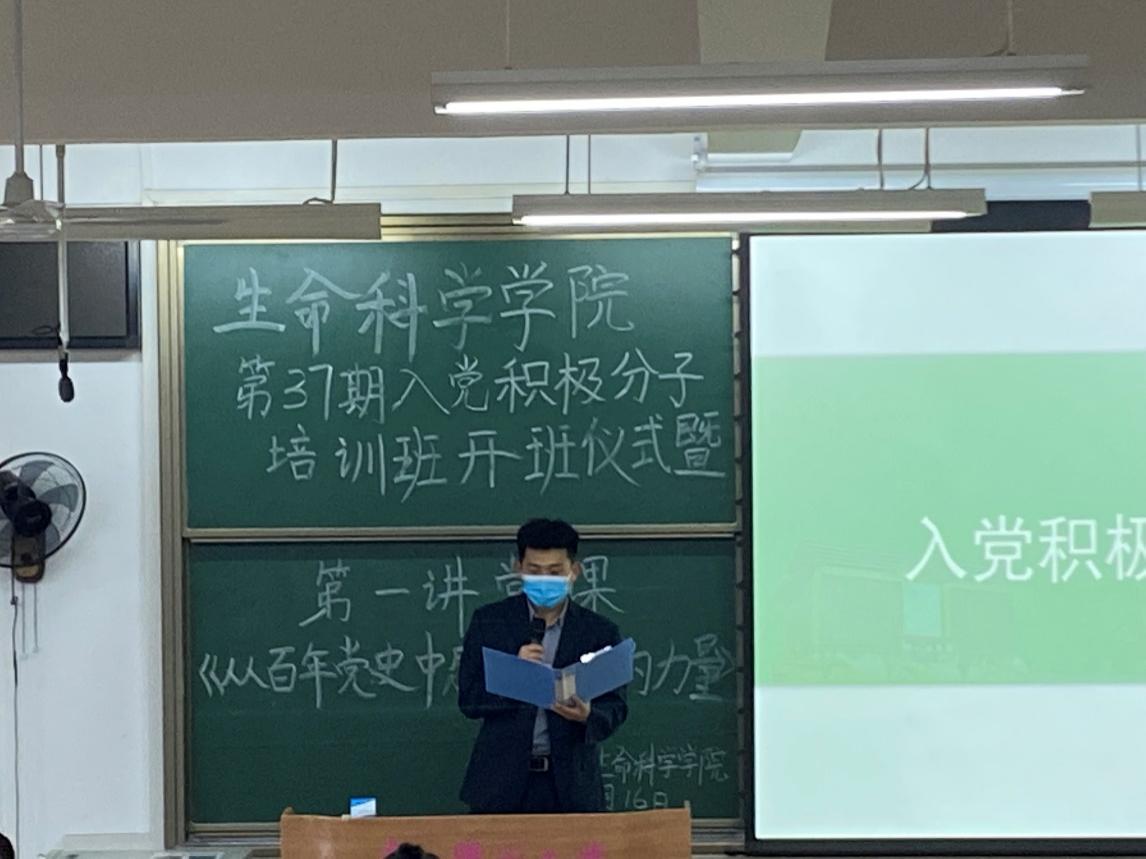 为深入贯彻习近平新时代中国特色社会主义思想,不断提高入党积极分子的思想政治素质和政治理论水平,2022年4月16日上午,生命科学学院在理科楼四区201教室举办第三十七期入党积极分子培训班(春季班)开班仪式。生命科学学院党委书记孙涛、党委副书记卢洁、全体专兼职辅导员及第三十七期入党积极分子共同参加本次活动,活动由党委副书记卢洁老师主持。