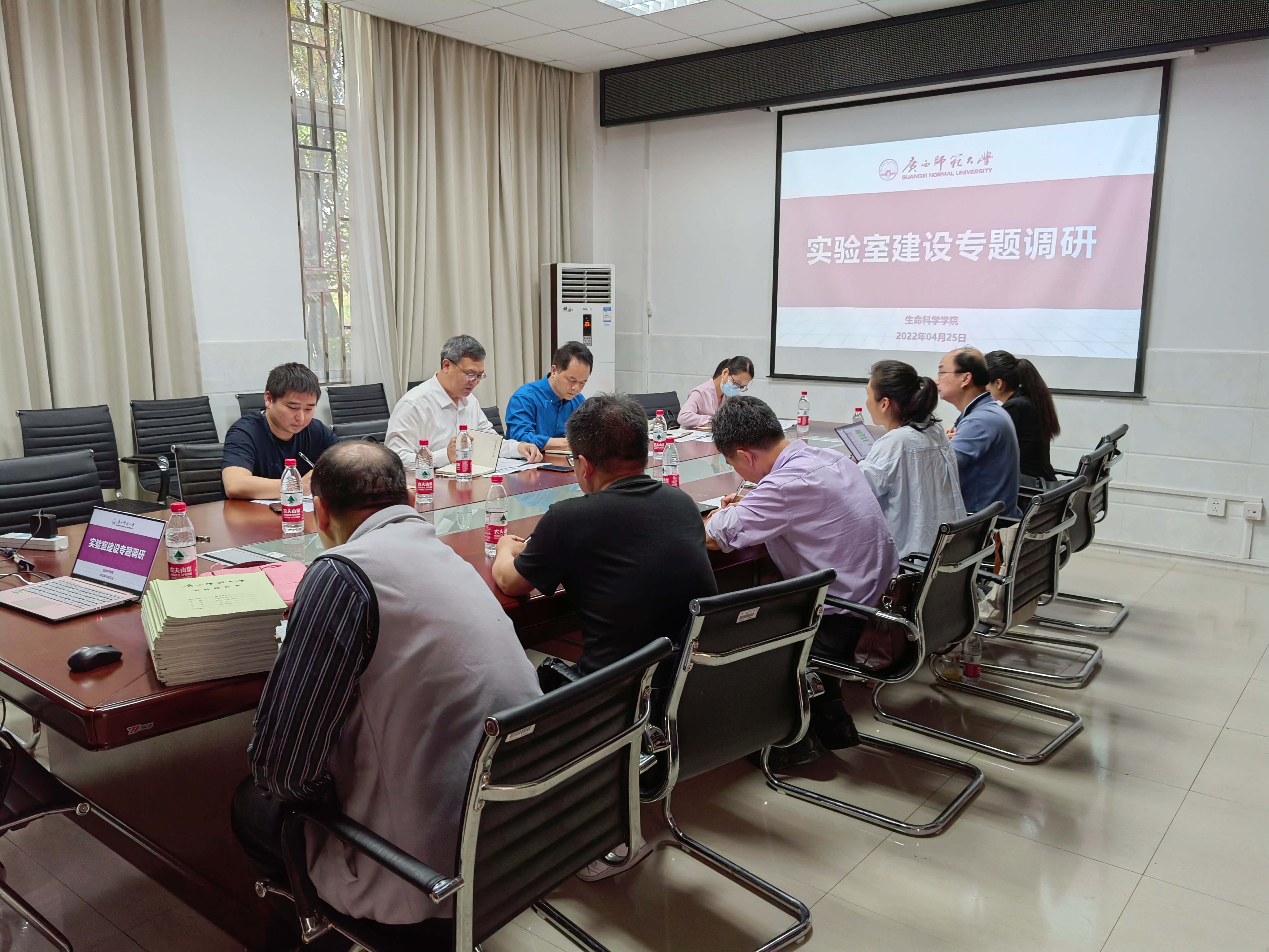 4月26日上午,科技处宋树祥处长、黄海儒副处长带队一行5人到我院珍稀濒危动植物生态与环境保护教育部重点实验室及生物教学实验中心,开展实验室建设规划与实验安全专题调研,科技处此次调研旨在全面了解学院和师生员工对实验室建设的需求,做好学校实验室建设发展规划,增强实验室安全管理能力,改善实验教学条件,提升教学科研工作水平。