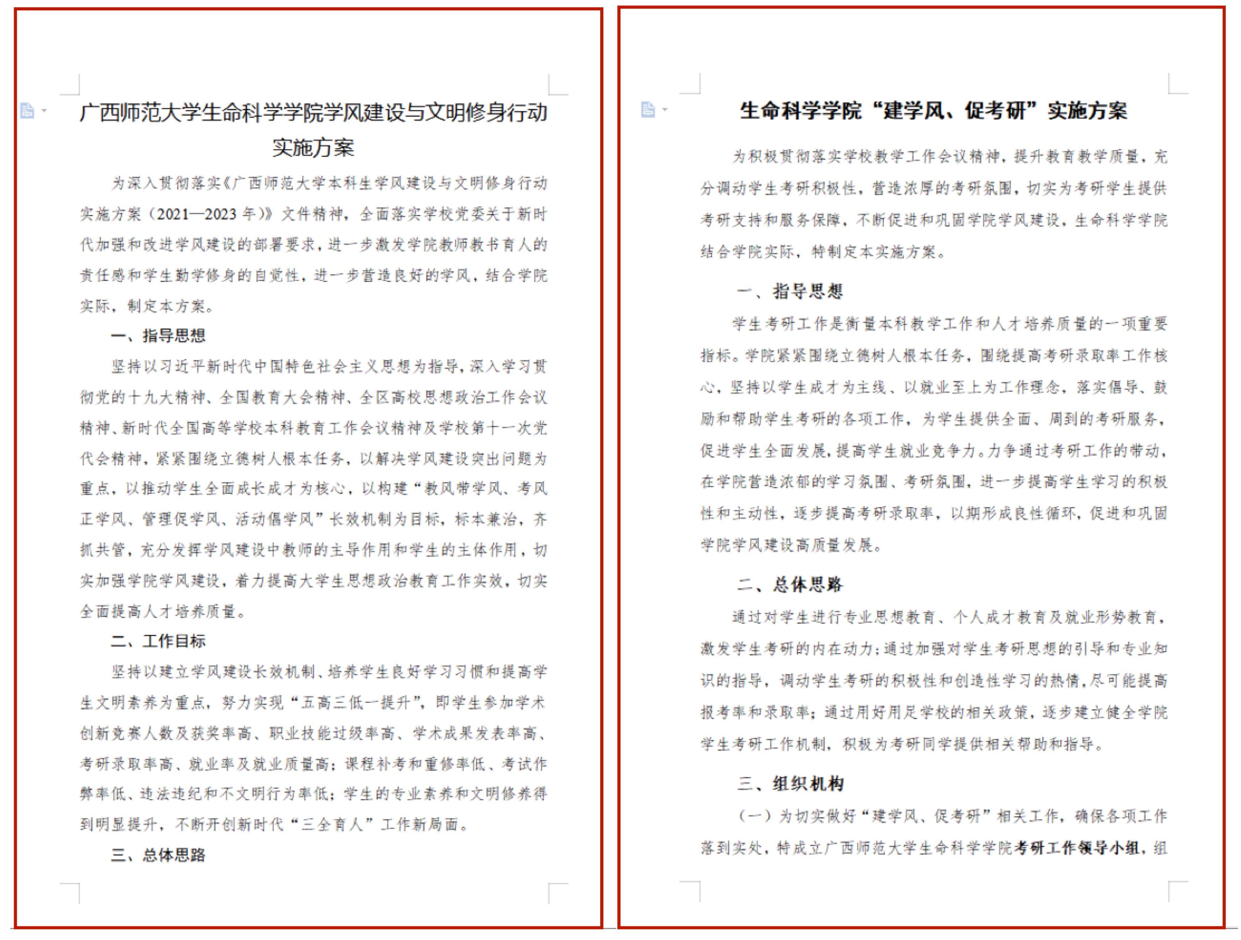 为贯彻落实学校学风建设工作部署,强化学风建设,学院坚持以学生为中心,制定出《广西师范大学生命科学学院学风建设与文明修身行动实施方案》《生命科学学院“建学风、促考研”实施方案》《生命科学学院关于开展“杜绝迟到早退,禁早餐进课堂”专项行动的通知》等制度文件,全面从严管理。同时,成立由学院党政领导班子、专兼职辅导员、院学生会学习部成员和各班级学习委员组成的督察小组,对迟到、旷课、在教室吃早餐等现象进行检查监督和记录,建立检查监督反馈机制,切实解决学风建设问题,以完善的规章制度建设和执行落实保障、促进学院学风建设。