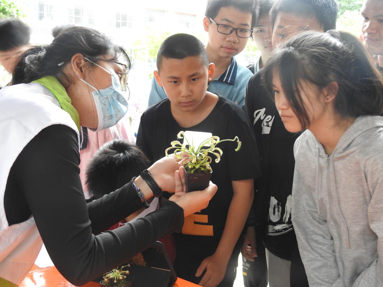 活动中,生物多样性博物馆的同学们从“食虫植物标本展示”、“珍稀动物标本展示”、“微观-细胞之美”等内容给在场师生进行了生动地动植物科普,同学们被深深吸引,都凑到跟前静静观察,并在我们准备好的图纸上的用画笔给他们眼中的动植物涂上了美丽的色彩,用他们的方式感受并理解生命科学的美丽。