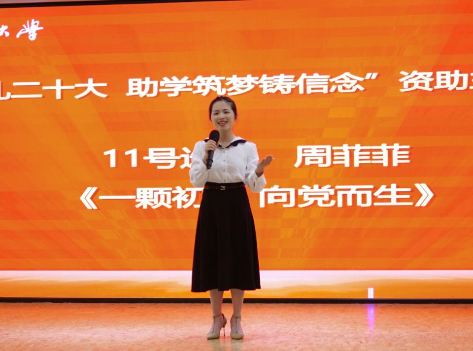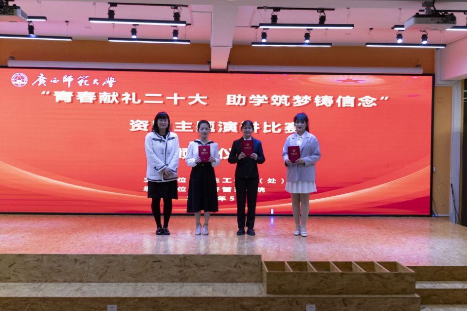为迎接党的二十大,做好国家资助政策宣传,培养广大青年学生诚信感恩品质,坚定理想信念,厚植回报国家的情怀,进一步推进我校资助育人工作,近日,我校“青春献礼二十大 助学筑梦铸信念”主题演讲比赛在雁山校区大学生创业园路演大厅举行。