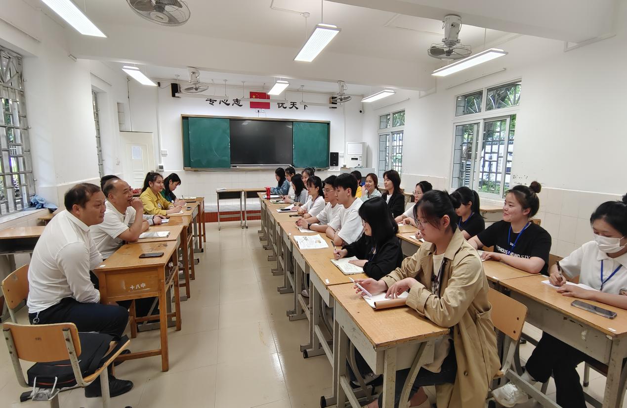 随后,老师们听了实习生段炳娟的公开课。在点评环节,段炳娟同学首先进行了课后的教学反思,接下来,老师们分别从中学课程标准要求、教学方法、教技能力、教学仪态等方面对实习同学进行指导。
