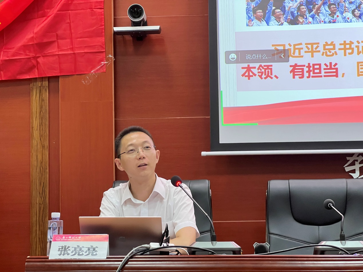培训伊始,张亮亮书记以“党领导青年运动的光辉历程”为主题,从中国共产党领导青年运动的发展历程、新时代中国青年运动书写的崭新篇章、中国共产党领导青年运动的发展规律三个方面系统回顾了中国共产党领导下中国青年运动的百年历程和共青团团结带领一代代青年在各个时期所作出的历史贡献。张亮亮书记强调,青年朋友要准确把握中国青年运动的发展脉络,深入理解中国青年运动的时代特征,牢牢把握中国青年运动的时代主题,激发青春理想,凝聚青春力量,继续书写青年运动新的辉煌。勇立潮头迎接新的“赶考”,以更加积极的精神面貌和实际行动迎接党的二十大胜利召开。老师介绍了中国共产党领导青年运动的发展历程,从新民主主义革命时期以来,党团结带领青年投身革命斗争,谱写了壮丽的青春之歌。接着,张老师讲述了习近平总书记关于青年工作的重要思想。最后,张老师从中国青年蓬勃发展的根本保证、客观条件、主观因素几个方面介绍了中国共产党领导青年运动的发展规律。