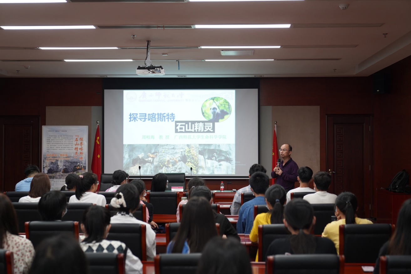 5月27日下午,在雁山校区图书馆204会议室,我校第十七期“名师导读”工程特别邀请到我校生命科学学院博士生导师周岐海教授为青年读者开展了以“探寻喀斯特‘石山精灵’”为主题的精彩导读。