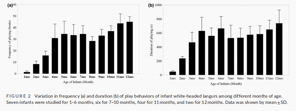 2022年8月4日,生科院周岐海教授、范鹏来副教授在 Ecology and Evolution 期刊发表题为“Pattern of play behavior in infant (age 1 to 12 months) white-headed langurs in limestone forests, southwest China”的研究论文,该论文以1-12月龄的白头叶猴为研究对象,探究了不同月龄的婴幼白头叶猴玩耍行为的差异和玩伴选择的异同。论文的第一单位为广西师范大学,杨丽婷与孙涛为共同第一作者,周岐海教授和范鹏来副教授为共同通讯作者,Ecology and Evolution 为生物学大类中科院二区期刊。