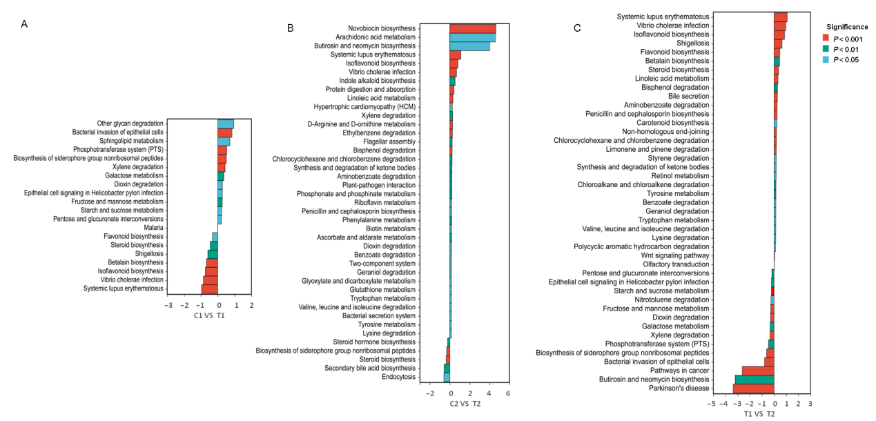 研究显示,中华圆田螺对低浓度Cd暴露(0.5 mg/L)具有一定的耐受性,Psudomonas可能对其适应性起重要作用;而高浓度Cd(1.5 mg/L)暴露显著改变中华圆田螺肠道微生物多样性,导致疾病相关通路富集而异生物质(xenobiotic)生物降解相关通路下调。本研究初步揭示了Cd胁迫对中华圆田螺肠道菌群的影响,为中华圆田螺养殖产业的健康发展提供重要参考。相关研究成果“Effects of cadmium exposure on intestinal microflora of Cipangopaludina cathayensis”发表在《Frontiers in Microbiology》上,蒋骄云博士为论文第一作者,吴扬扬(2020级硕士研究生)和程春醒(2020级硕士研究生)等参与了本项工作。(Jiang, J.Y., Li, W.H., Wu, Y.Y., Cheng, C.X., Ye, Q.Q., Feng, J.X., Xie, Z.X*. Frontiers in Microbiology 2022, 13, 984757; https://doi.org/10.3389/fmicb.2022.984757)。