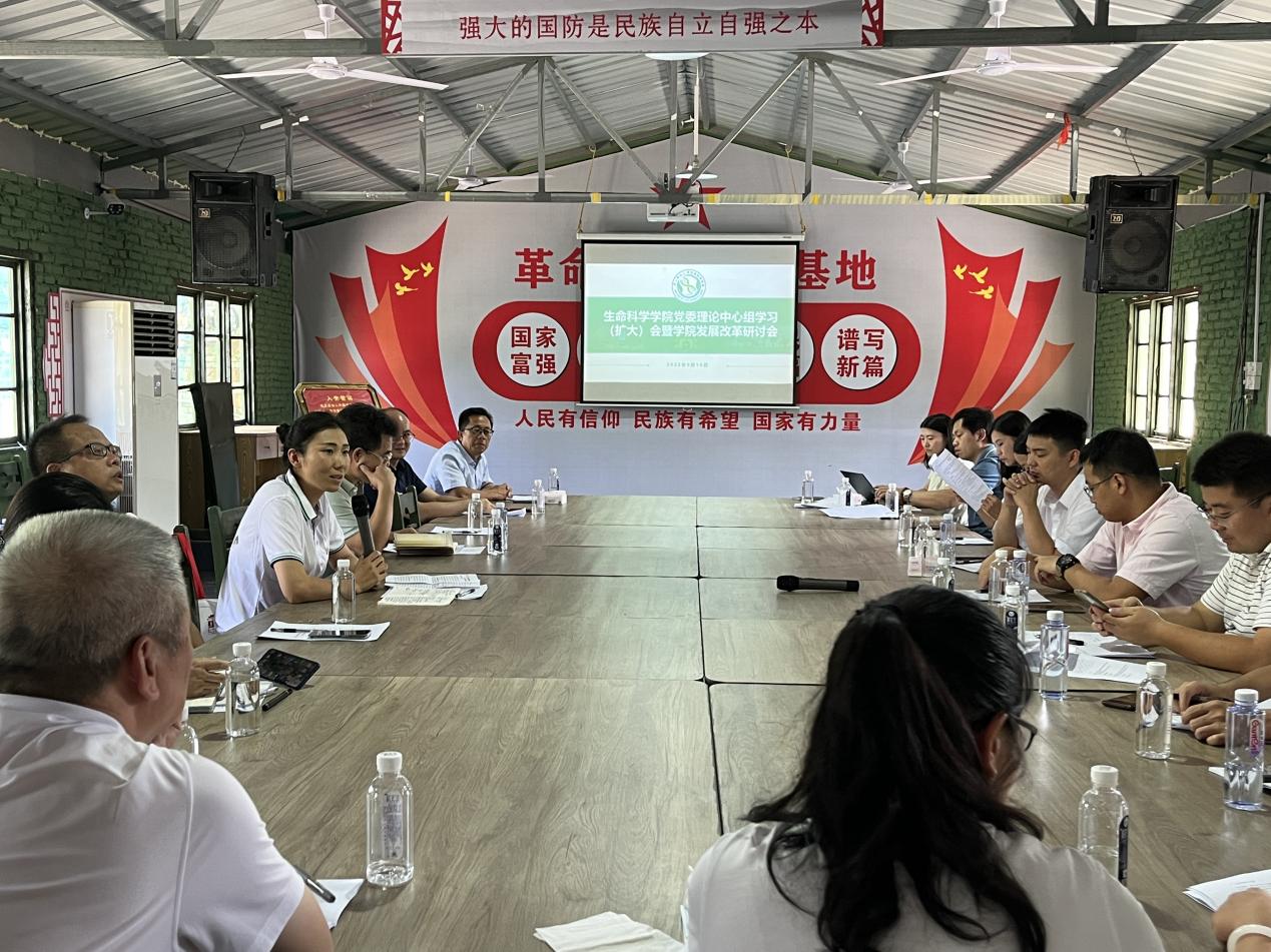 9月16日上午,生命科学学院在灵川革命传统教育基地会议室召开“深化改革强治理,勇攀高峰创一流”党委理论中心组学习(扩大)会暨学院发展改革研讨会。会议由党委书记孙涛主持,学院党政领导班子、党委委员、纪委委员、学术委员会委员、党支部书记、教研室主任、办公室主任、工会主席等20余人参加此次会议。