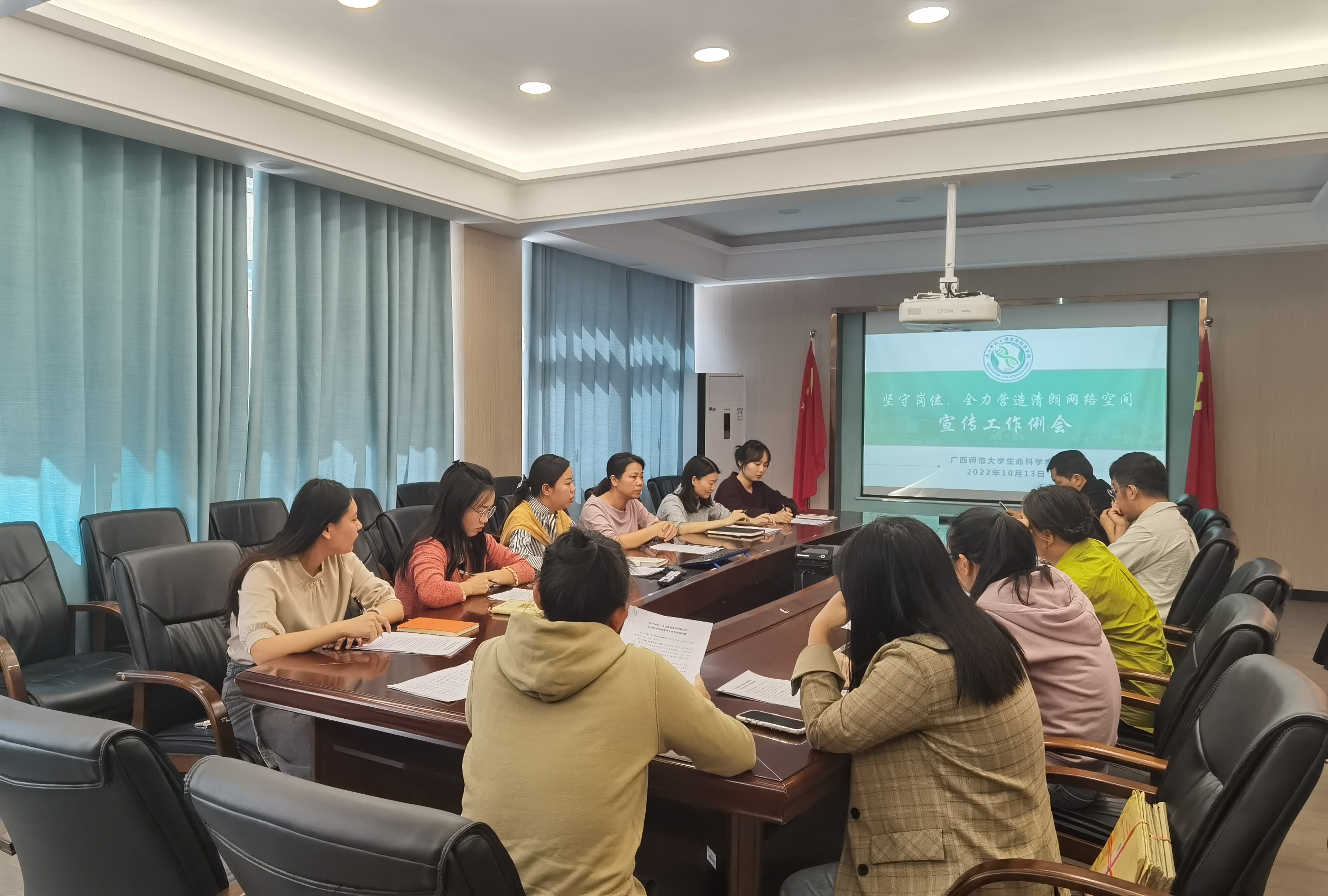 为聚力营造清朗网络空间,扎牢织密网络安全屏障,2022年10月13日中午,生命科学学院于党员之家召开“坚守岗位,全力营造清朗网络空间”专题宣传工作例会。学院党委副书记卢洁、党支部书记、教学秘书、院办新闻专员及学院各平台管理老师出席本次会议,生命科学学院新媒中心学生负责人共同参加。会议由学院团委副书记秦乐主持。