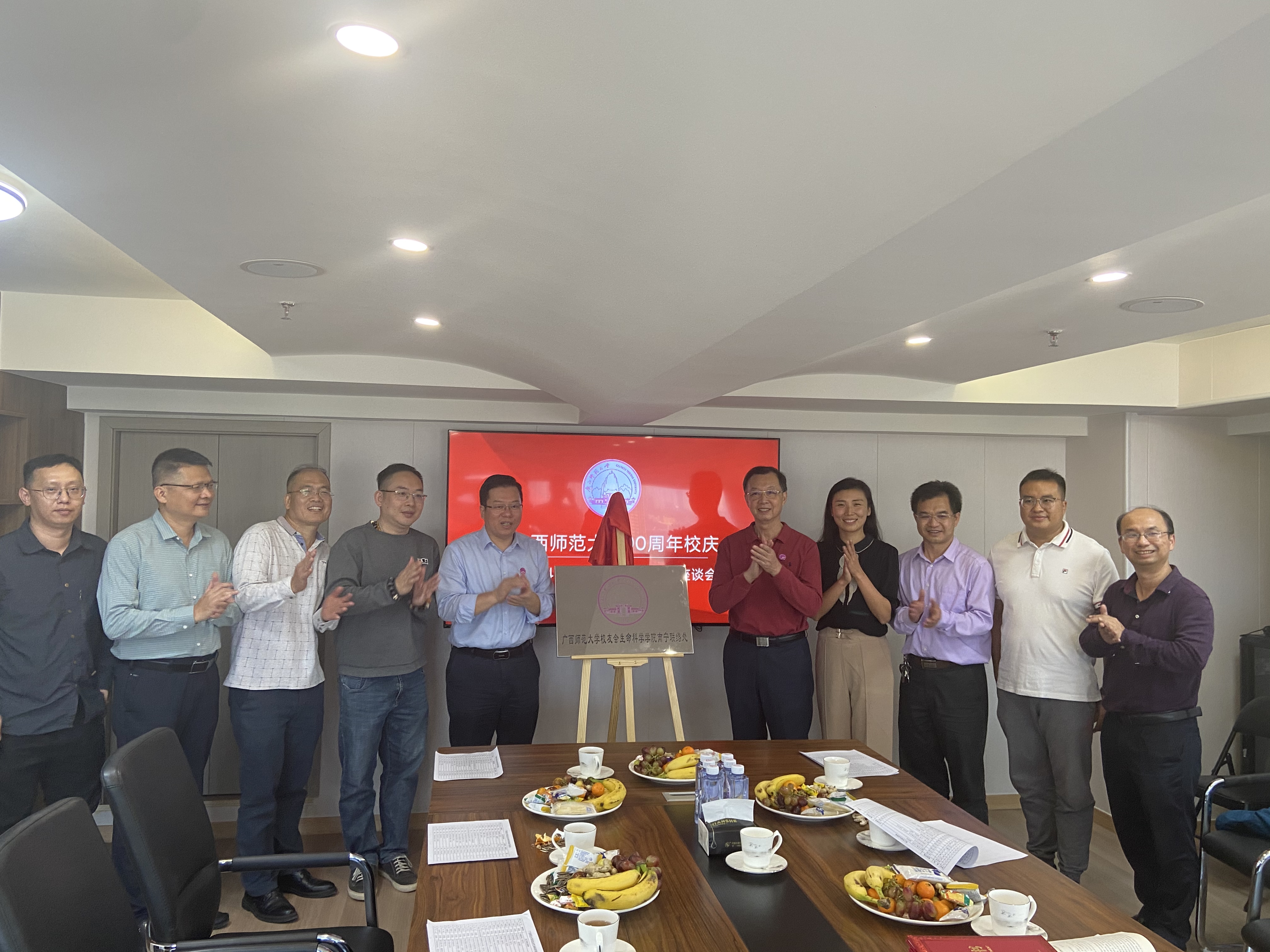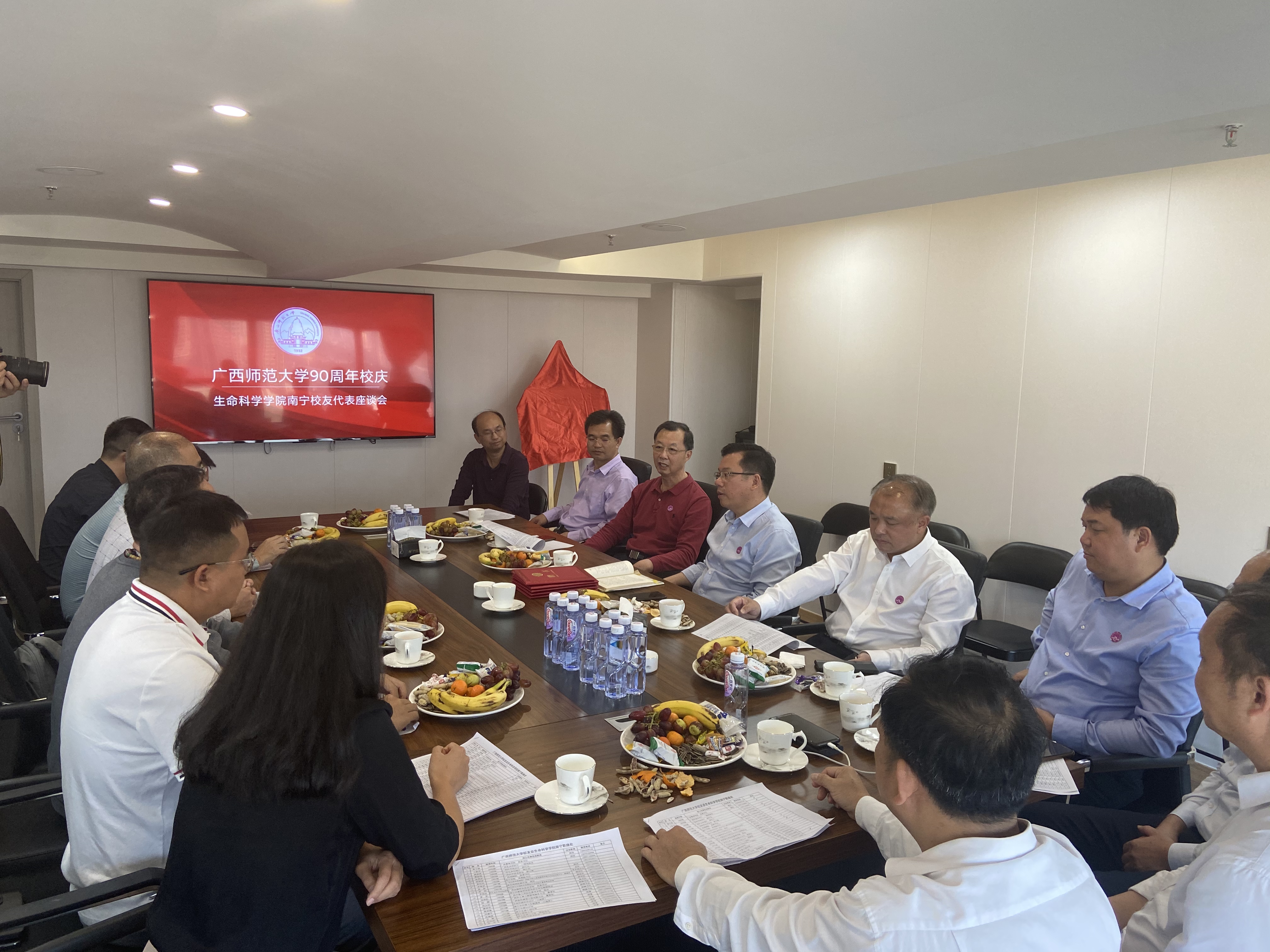 为迎接学校90周年校庆,进一步聚合校友力量,11月2日下午,广西师范大学生命科学学院南宁校友代表座谈会暨广西师范大学校友会南宁联络处揭牌仪式在南宁拜尔生物技术责任公司成功举行。学校党委副书记、校长贺祖斌,党委副书记赵铁,党委常委、总会计师李英利等一行出席会议,并与校友代表座谈交流。广西师范大学南宁校友会会长肖化、南宁校友会副会长兼秘书长贵尚明等参与见证。