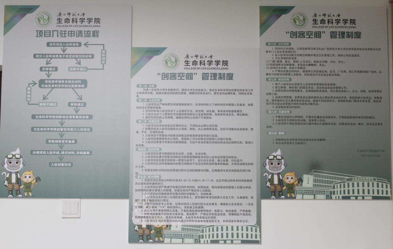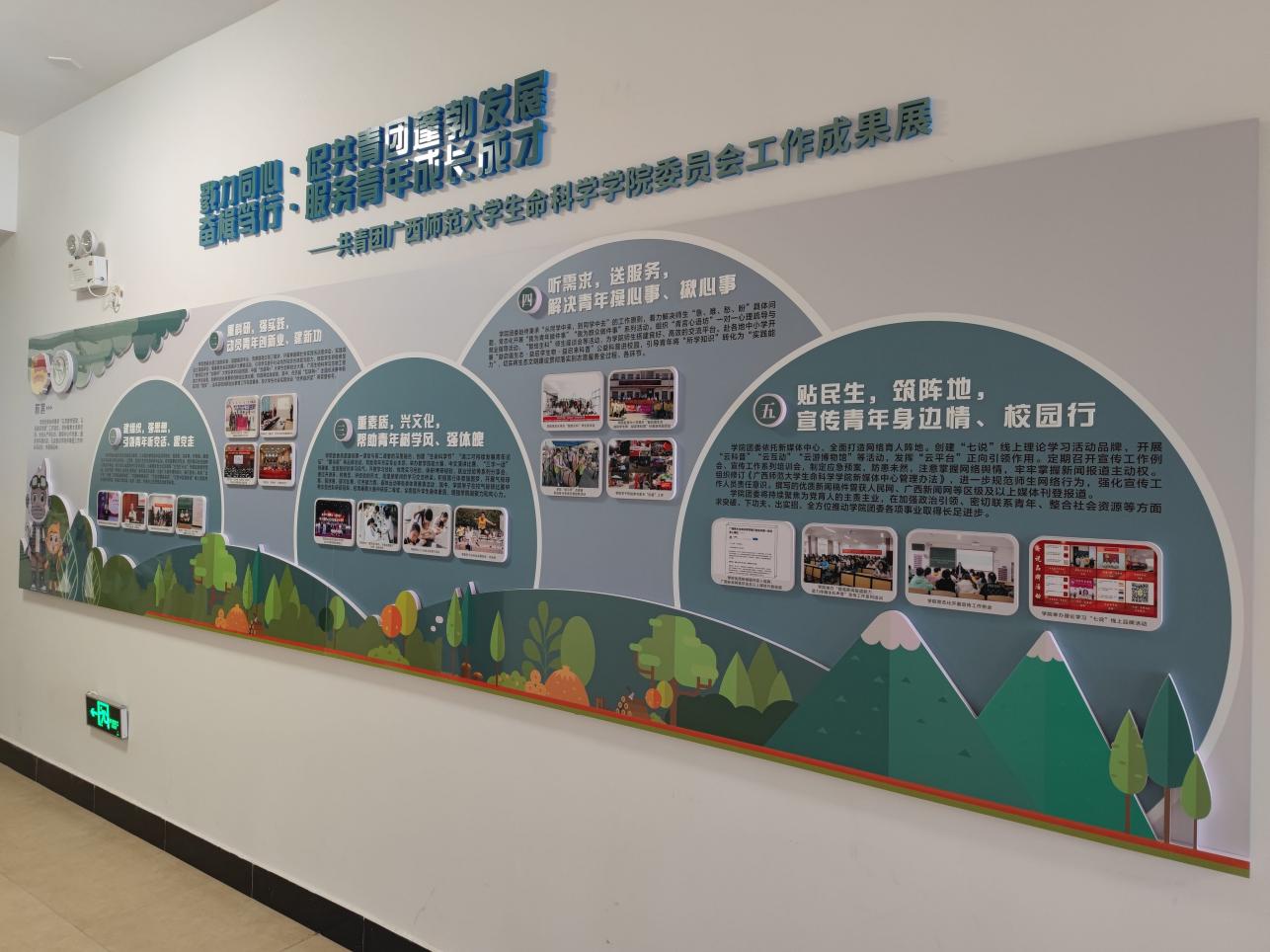 在团属活动阵地的升级建设当中,生命科学学院团委始终秉承“以党建带团建,以团建促党建”工作理念,坚持聚焦主责抓引领、全面从严带队伍、围绕中心作贡献、服务青年建机制,打造出多处如教学科研平台、社会服务等以文化墙为主要载体工作成果展示区域。同时,团属阵地也升级打造了生命科学学院“创客空间”,展示了学院创新创业人才培养工作的开展情况。